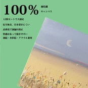 【12枚キャンパスセット】:セットには4サイズが選択可、各サイズは3枚あり、 全部12枚があって便利です。発送の便利さのために、キャンバスははめ込まれて包装しています。ご了承ください。綿化繊混紡とライト木枠を採用しており、丈夫で変形しにくい。保護フィルムで丁寧に包まれており、張りキャンパスをしっかり保護しています。