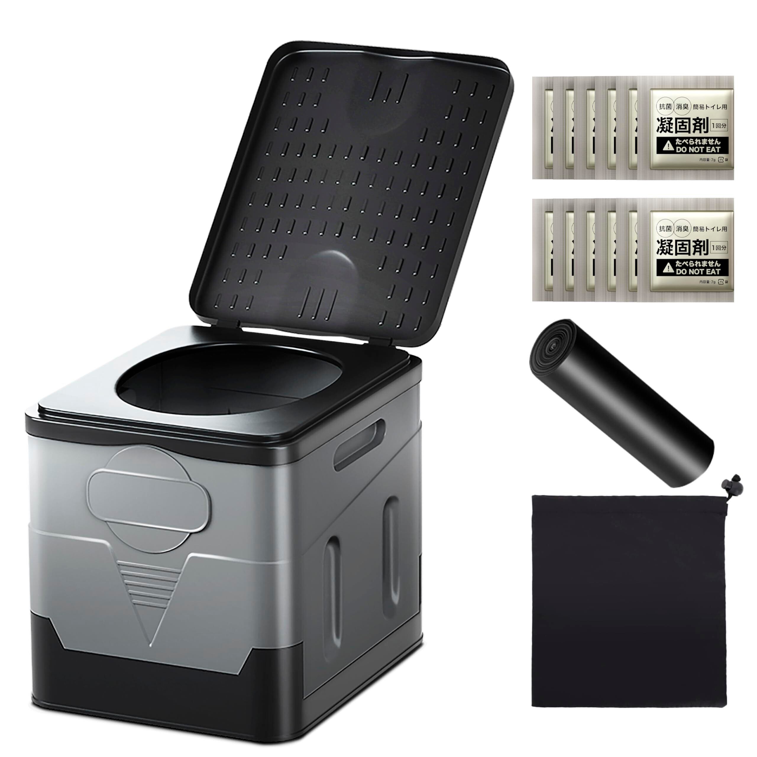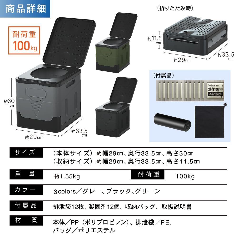 【防災士推奨】PYKES PEAK 簡易トイレ 携帯トイレ 防災グッズ 防災 災害用 非常用 排泄袋12枚付 凝固剤12個付 折りたたみ グレー