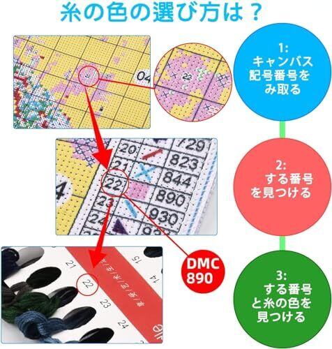 【快適な使い心地】布にパターンがプリントされるため、布目を数える必要がなく、初心者でも楽しめます。また、刺繍糸はそれぞれ番号付きの台紙にセットされ、必要量より30%増量され、紛失などの心配はありません。さらに、作品が出来上がった時には達成感が得られ、成功体験と自信に繋がります。お子様からお年寄りの方まで幅広い年齢層の方にご愛用いただけます