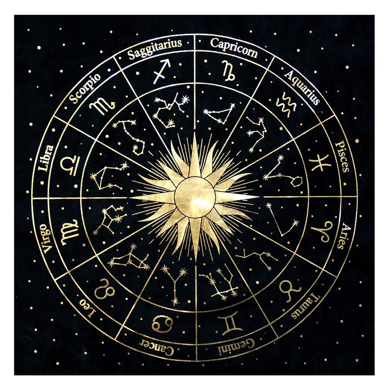 タロットクロス 大判 高級 マット ベルベット 49*49Cm 滑り止め付き 星座風 五芒星 バラ新月 カードゲーム用 占い用 クロス 星座-日-黒