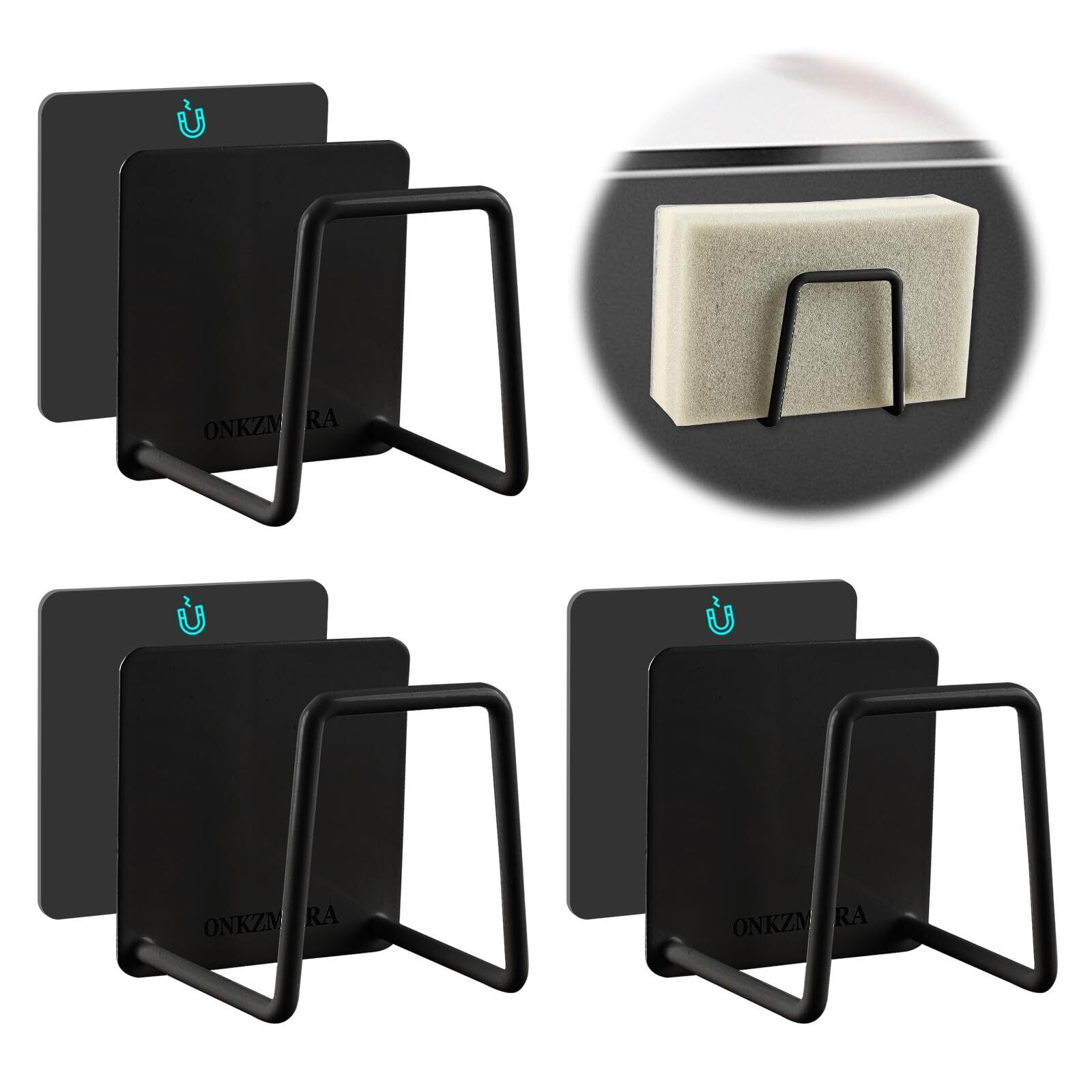 スポンジホルダー マグネット スポンジ置き 3個組 スポンジラック ステンレス製 防錆 シンク スポンジ置き 浮かせて収納 水切り キッチン スポンジラック 強力両面テープ+マグネット付き キッチン/シンク/浴室/洗面所/台所収納 (ブラック)