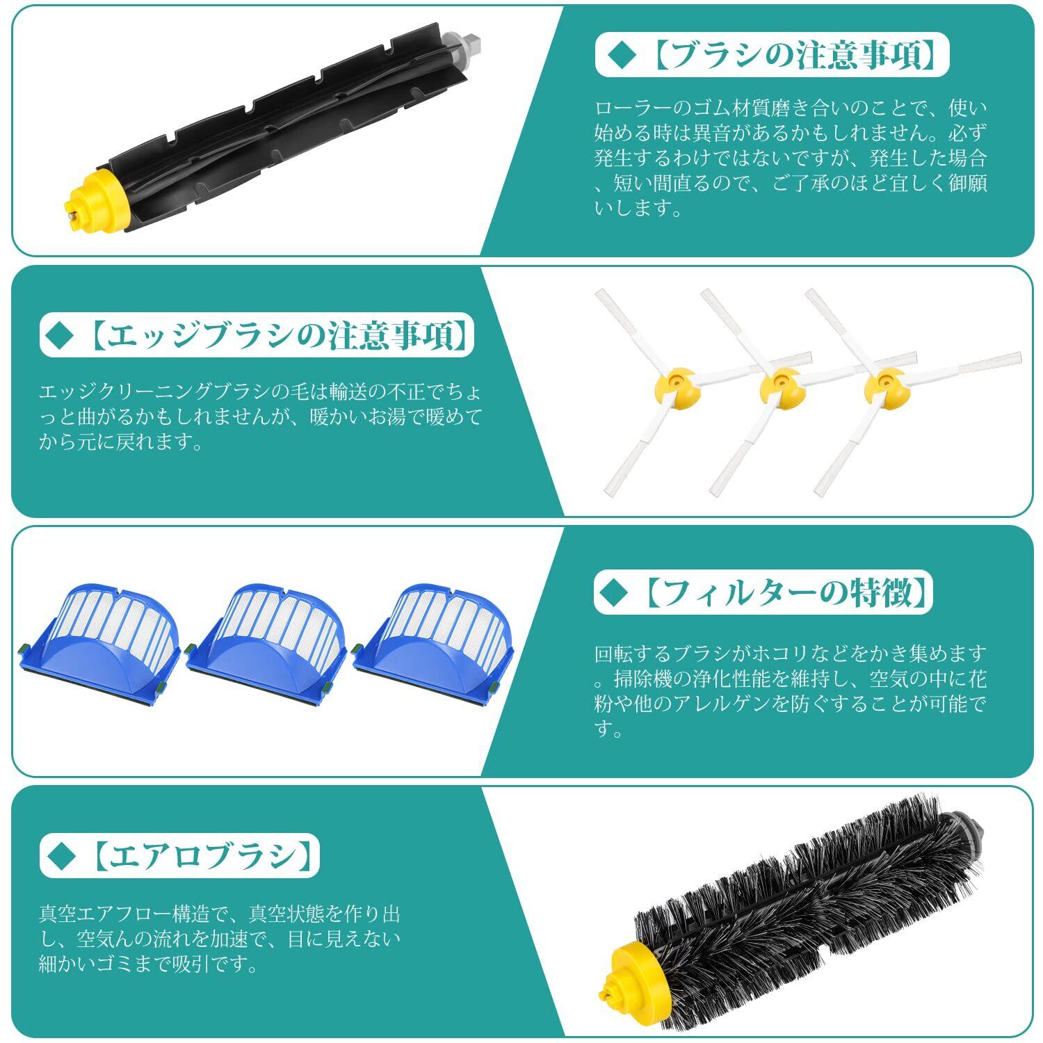 【メンテナンス】アイロボット部品は簡単に取り付け、耐久性があります。ルンバの清潔能力が弱くなった場合、掃除機の高性能を保つためにブラシとフィルターを交換してください。掃除機の使用状況によって異なります。