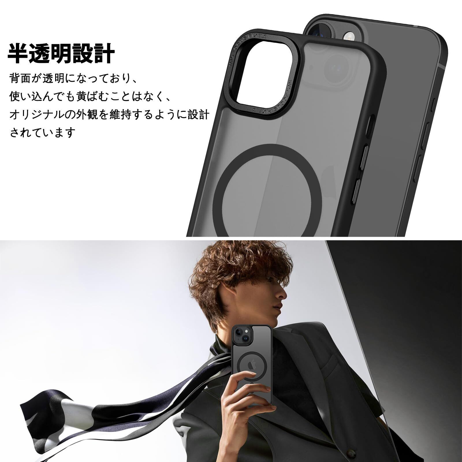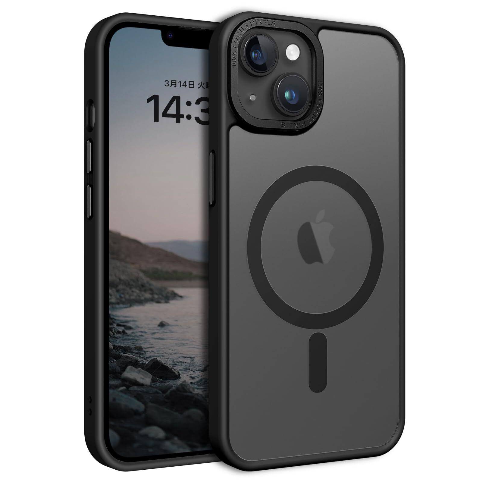 BENTOBEN iPhone 13/14 ケース MagSafe対応 ワイヤレス充電 マット感 半透明 指紋防止 薄型 耐衝撃 傷防止 レンズ保護 ストラップホール付き iPhone 13 ケース iPhone 14 ケース カバー ブラック