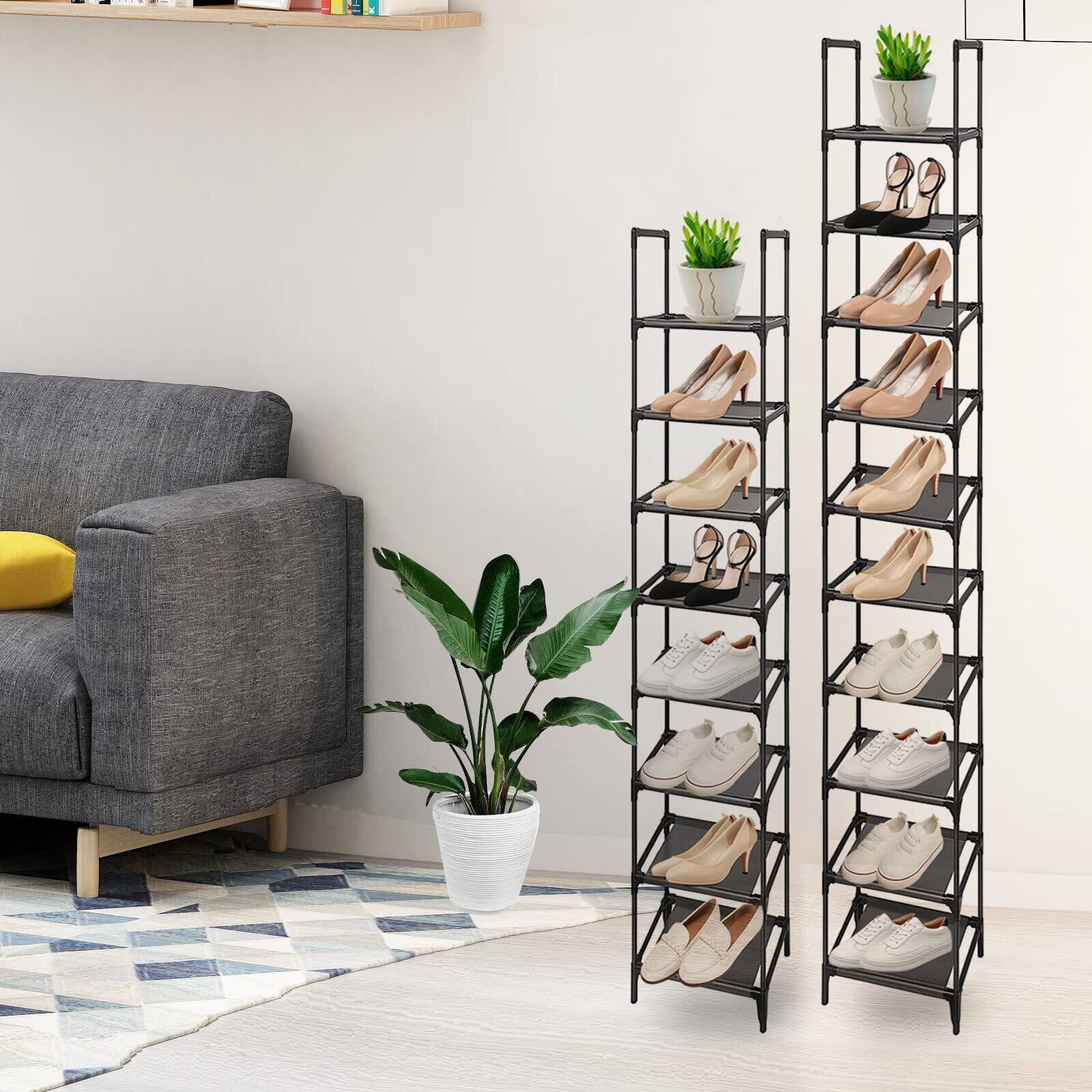 YRCBEHFU シューズラック10段 靴収納 最新防塵版 シューズラックスリム 省スペース 進化した不織布 靴棚 寝室/玄関に靴を効率収納 靴入れ 組み立て式 幅約30×奥行30×高さ175cm(10段、ブラック)