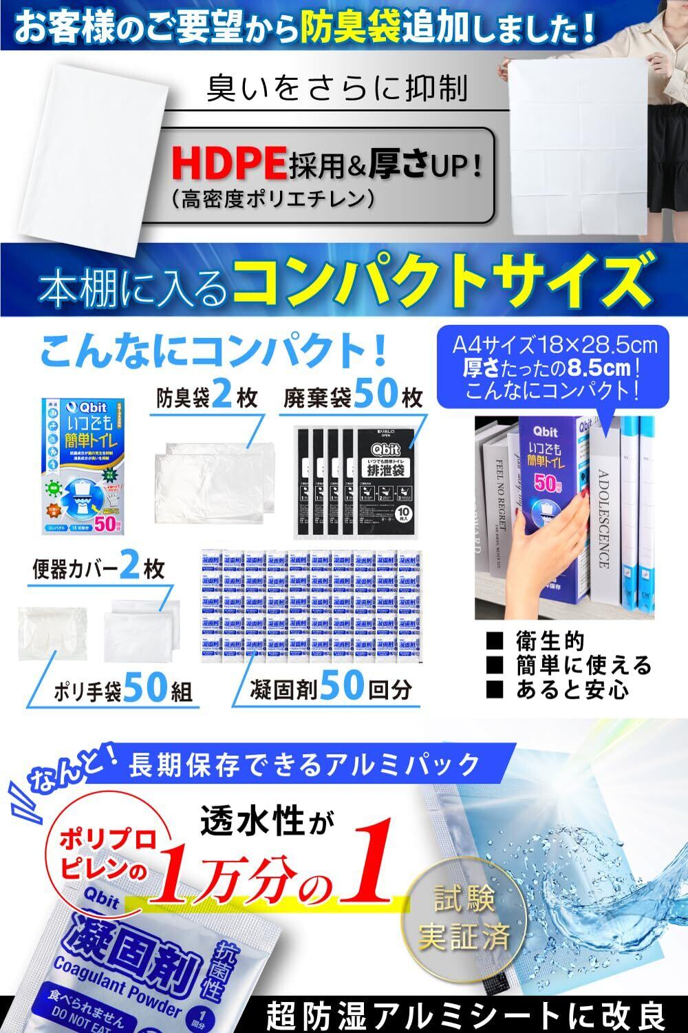 Qbit いつでも簡単トイレ 防災士と共同開発 15年保存 【防災グッズ大賞】 強力消臭 簡易トイレ 防災/災害用/非常用/携帯トイレ 凝固剤10g以上大容量 手袋 防臭袋 付き (50回+お試しセット1個 1人7日分)