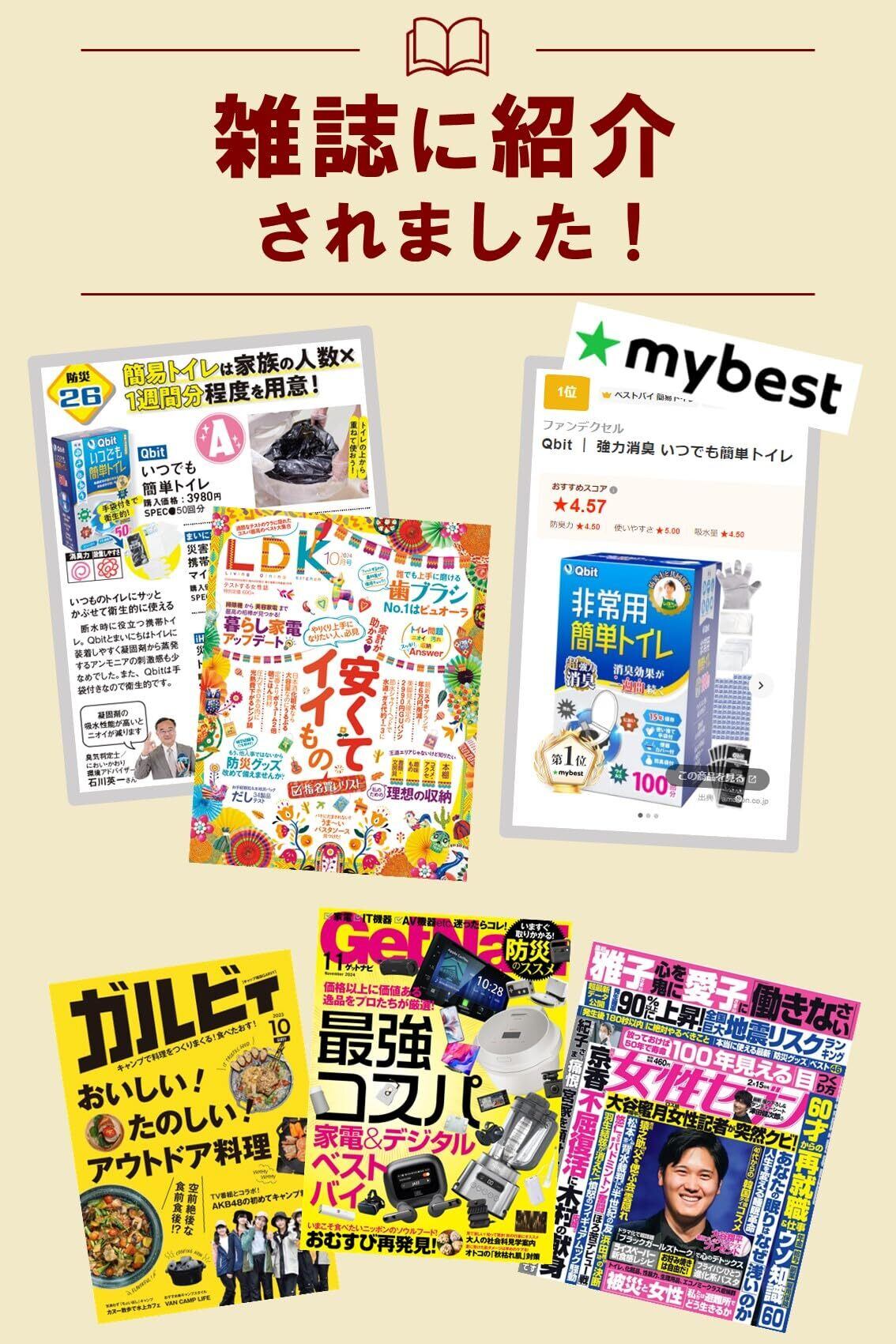 【50回分なのにコンパクト】Qbitの簡易トイレはいつでも簡単に使用できることをコンセプトにしています。50回分で、A4サイズ、厚さ8.5cmと本棚においておくことができるコンパクトサイズの非常用トイレです。すぐに取り出して使い、またすぐに戻すことができます。場所をとらず邪魔にならないため、防災用品として備蓄しておくのに最適です。