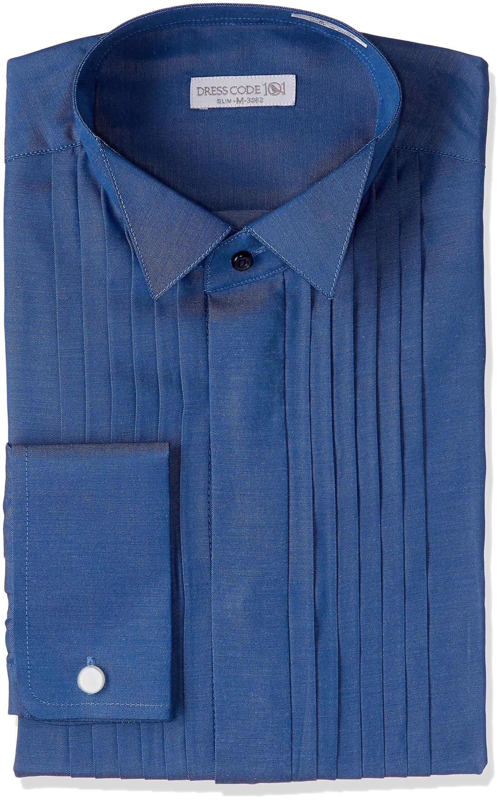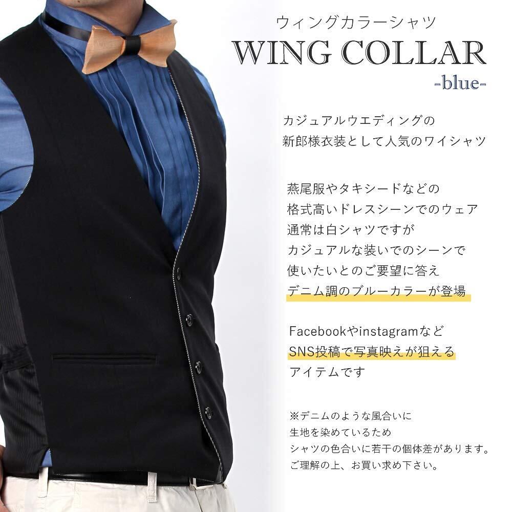 [ドレスコード101] ワイシャツ 結婚式・パーティ・おめでたい日に ウィングカラー 長袖シャツ 冠婚葬祭 新郎 ウェディング SHIRT-40XX メンズ ブルー 首回り37×裄丈80 (日本サイズS相当)