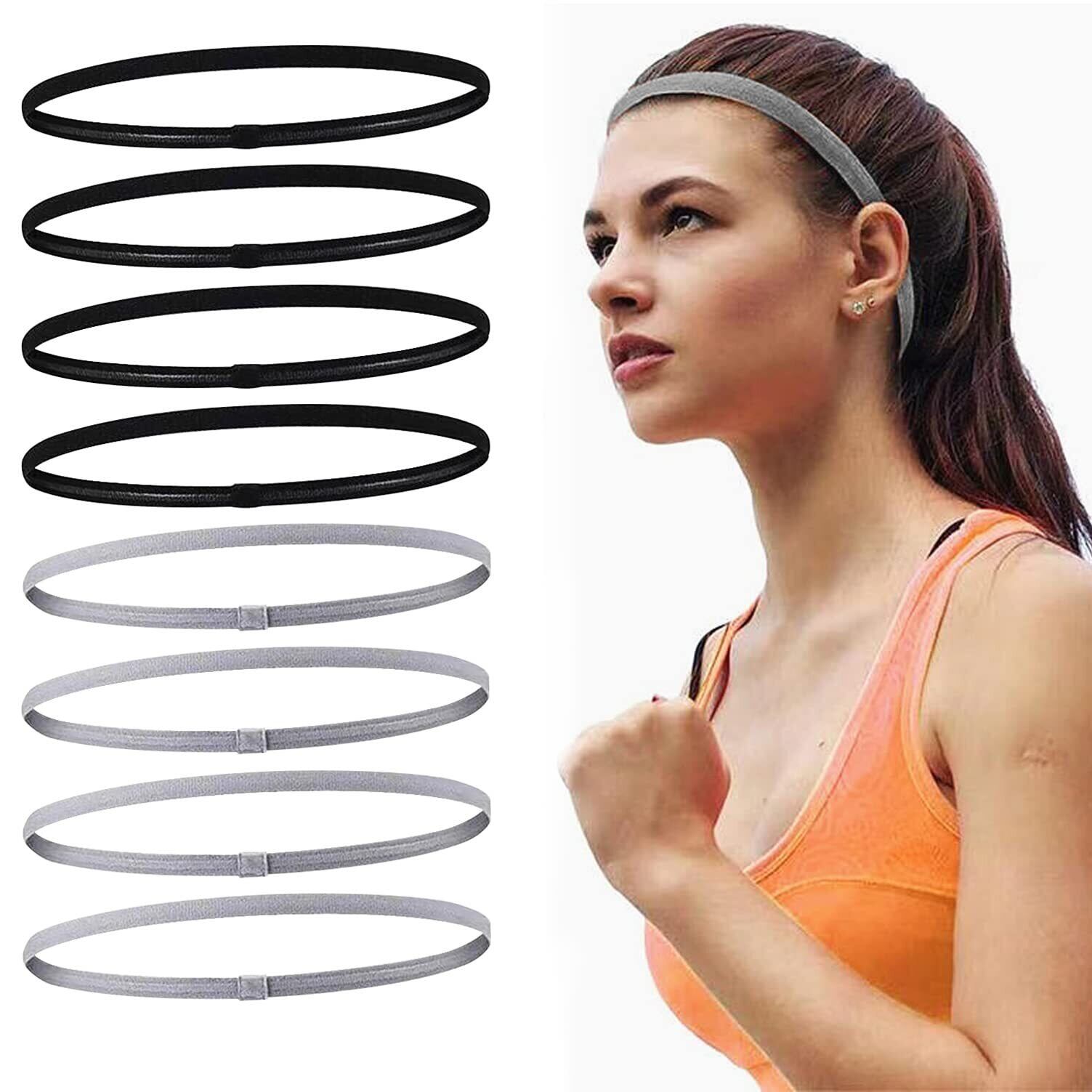 Doyime ヘアバンド 汗止め ヘッドバンド 8枚セット 髪留め 洗顔 運動用 抗菌防臭 吸湿速乾 滑り止め 軽量 弾性 細身スポーツ汗止めヘアバンド 男女兼用