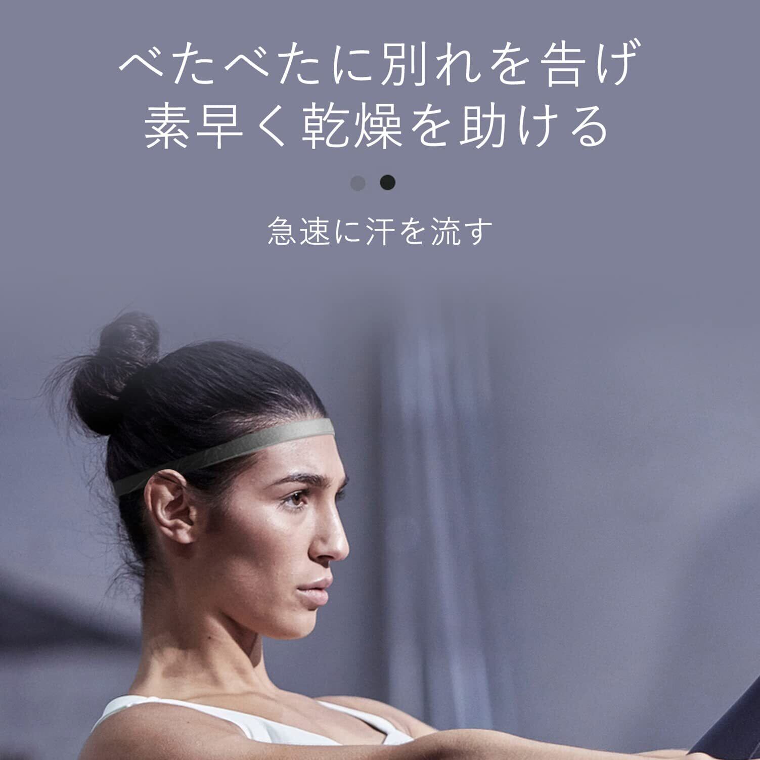 【吸汗速乾性】 運動する時、汗が額から目と顔に落ちる前に吸収、そして乾くことがすぐできます。