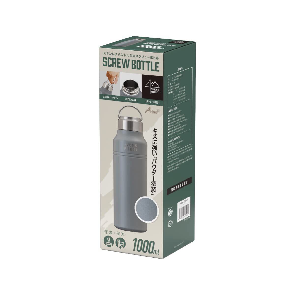 アトラス 水筒 1000ml 1.0リットル 1.0L 保冷 保温 真空断熱 ステンレス マグボトル 軽量 直飲み 洗いやすい アウトドア 白湯 WENS ウェンズ グレー AWPB-1001GY