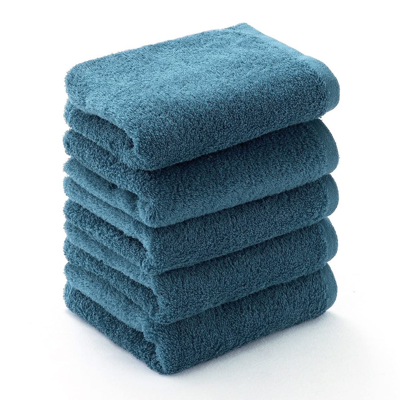 タオルファクトリーラボ ふんわり 吸収 フェイスタオル 5枚セット [エアリー] セルリアンブルー 軽い 薄手 プチプラタオル 002 約34×80cm