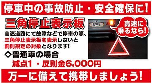 新車購入時には車載されてません!風圧に強く高速道路上でも安全に使用可能! ! 高速道路や自動車専用道路等で車を停止せざるを得ない場合、三角停止表示板を表示していないと、道路交通法違反となります! 1台に1つ常備しておきましょう。