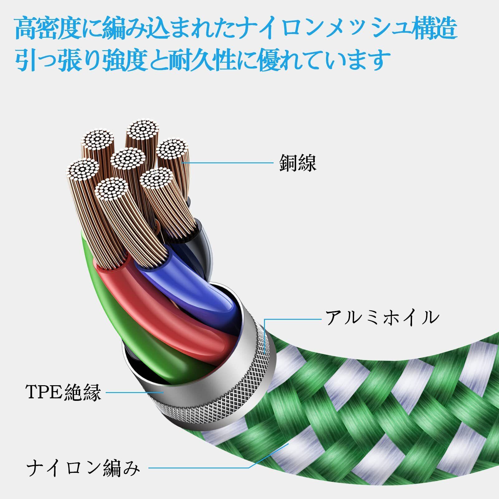 【高品質材質、断線防止】ライトニングケーブルの外部が高品質のナイロン編み材質を採用し、数千回以上の折り曲げテストに合格したので、市販の他のデータケーブルよりも強度と耐久性に優れています。また、USB ライトニングケーブルの内部にはアルミ箔は耐磨耗性に優れて、長年にわたり御愛用頂けます。