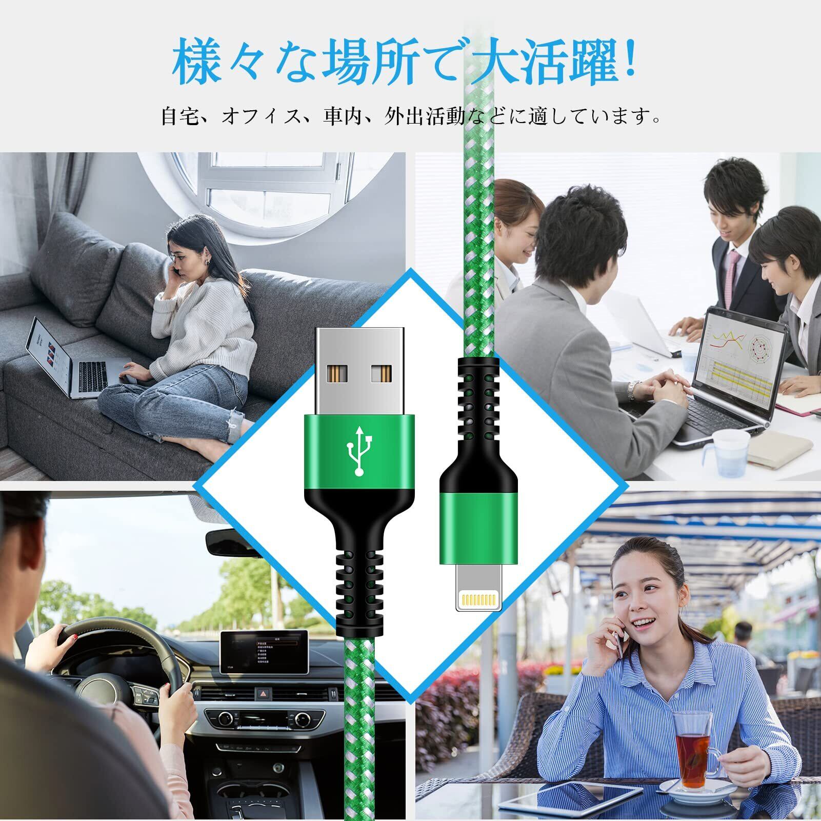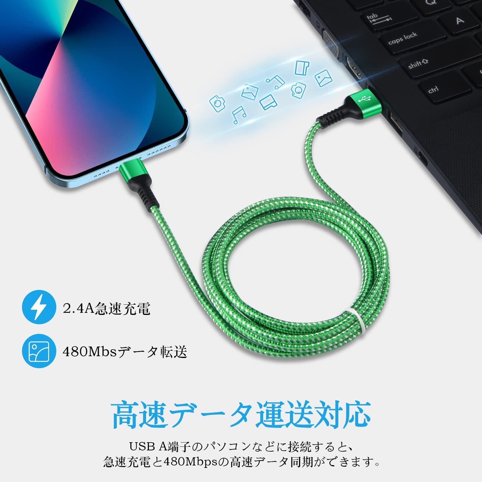 【急速充電、データ同期】iPhone 充電ケーブルが5V/2.4Aの急速充電に対応しています。高品質の銅線を利用し、電気抵抗が減少し、充電時間が速くなります。また、こちらのじゅうでんケーブルはUSB 2.0経由で最大480Mbpsの高速データ同期を実現できます。