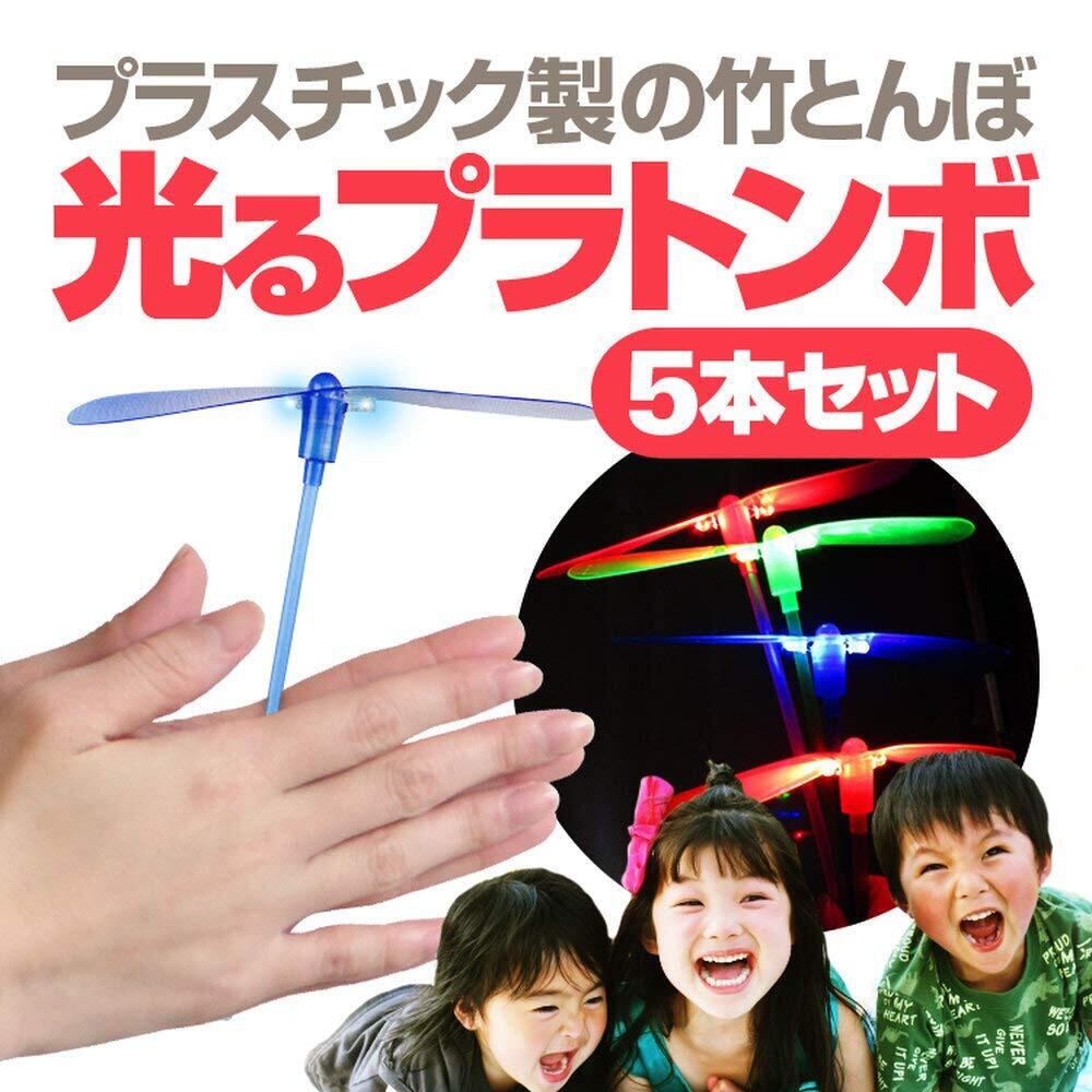 lifepower 光るプラトンボ お得な5本セット プラスチック製竹とんぼ LEDライト付き お祭り/縁日/キャンプ/アウトドア/各種リクリエーション等にも LEDプラコプター 5本色ランダム出荷