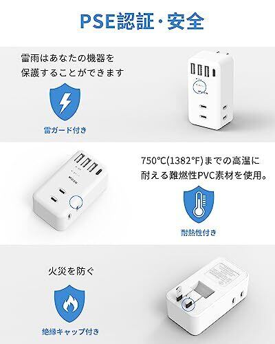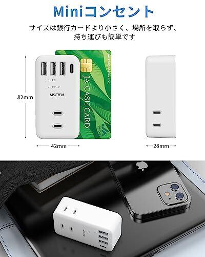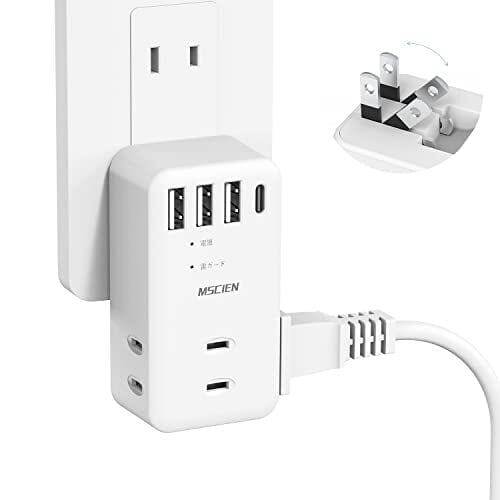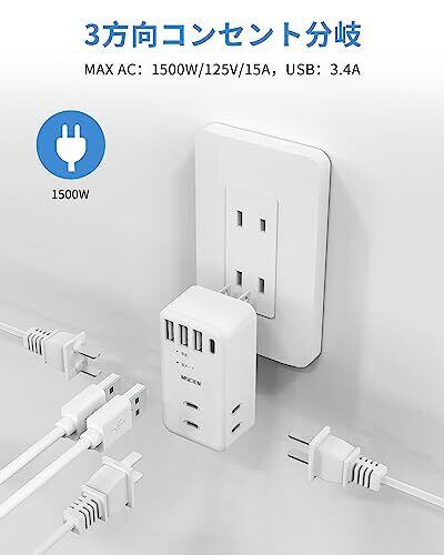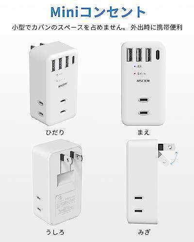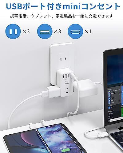 Mscien コンセント タップ usb 電源タップ USB 雷ガード コンセント 3個AC口3個USB-A 1個Type-Cポート たこあしコンセント 直挿し 分岐 充電タップ