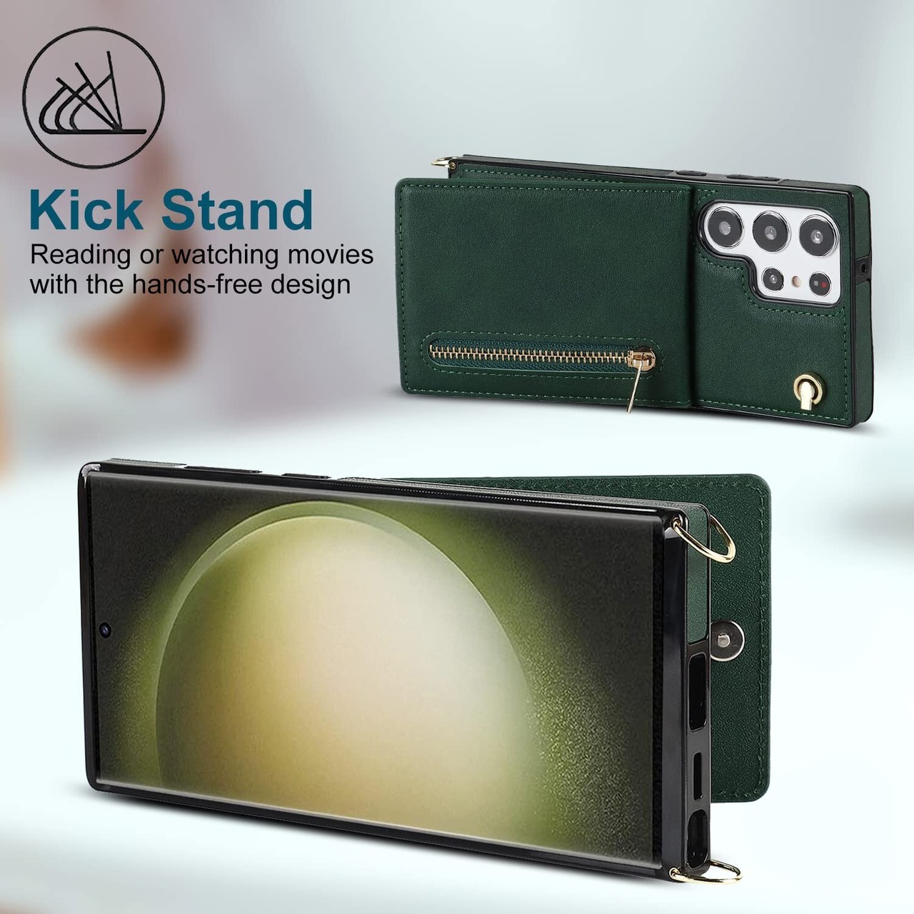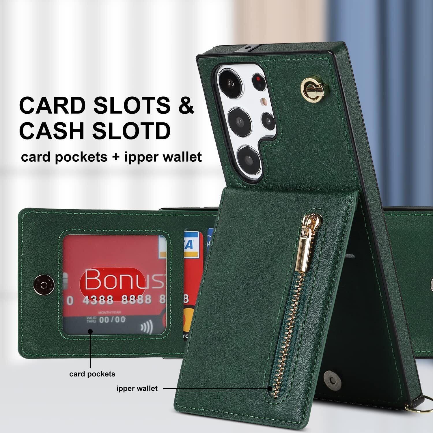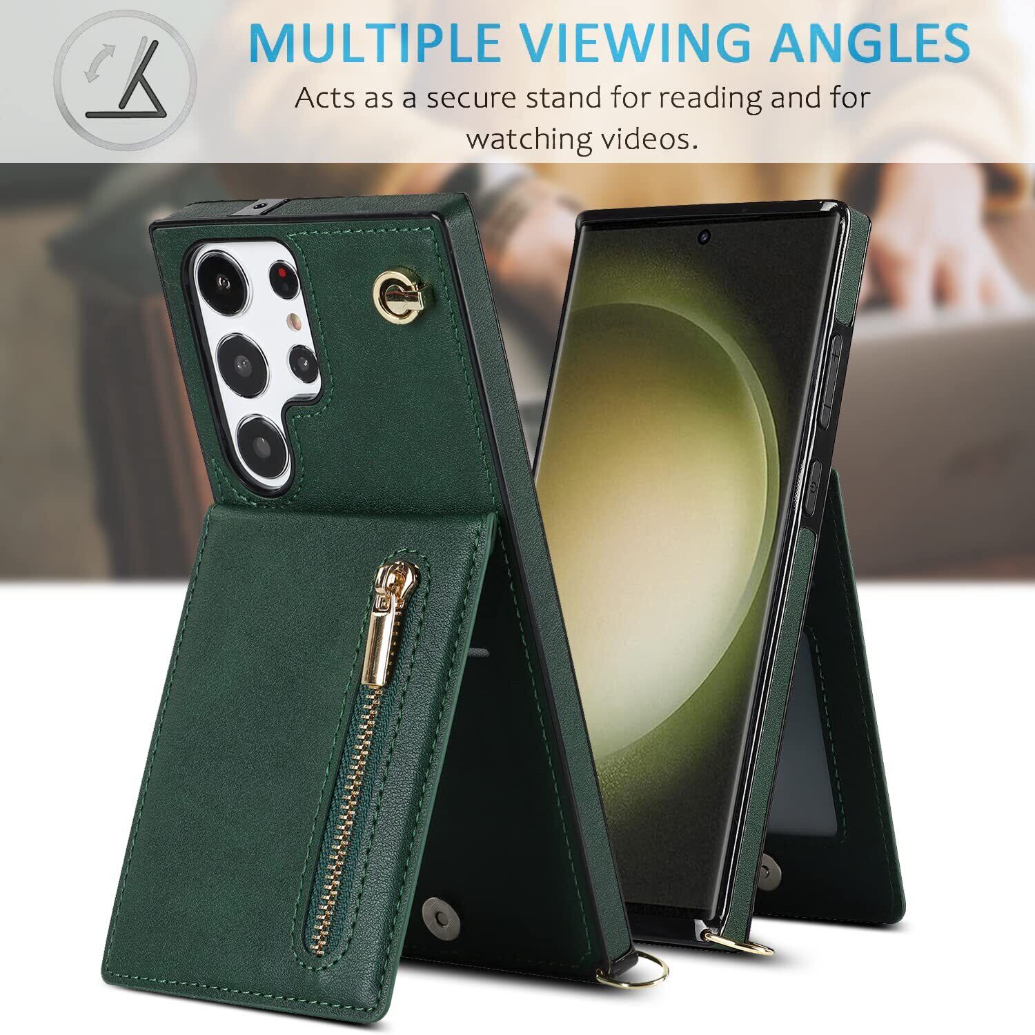 Galaxy S23 Ultra 5G SC-52D SCG20 対応 スマホ 携帯 用 ケース ギャラクシーs23 ultra ケース手帳型 ショルダー クロスボディgalaxy s23 ultra ケース 肩掛け 首かけ 斜めがけ ショルダー ケースGalaxy S23 Ultra 5G 財布型 ケース ギャラクシーs23 ultra ケース 純正 カバー ギャラクシーs23 ultra ケース Galaxy S23 5G Ultra 背面 カード収納 Galaxy S23 Ultra 5G 手帳型 ケース【上下開】 Cavor Galaxy S23 Ultra 5G 携帯 カバー ステント機能 ギャラクシー s23 ultra ケース PU皮革 純正 減圧ショック 指紋防止 落下防止 Qi ワイヤレス充電対応 薄型軽量 取り外し可能 落下保護 【ダークグリーン】