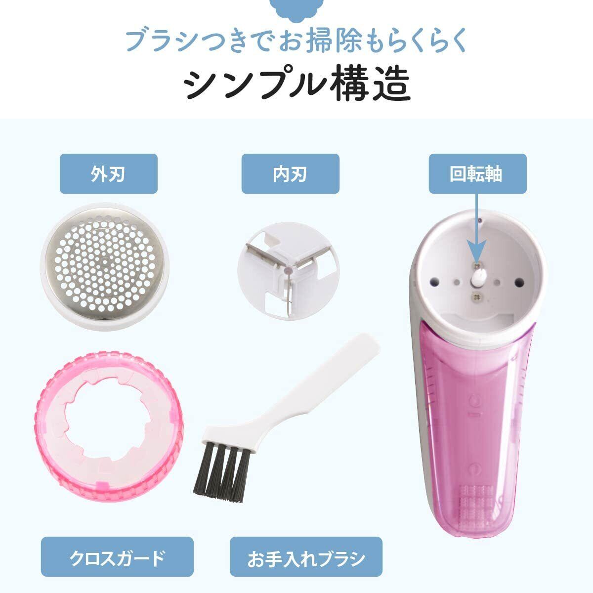 オーム(OHM) 電機 毛玉取り器 電動 電池式 毛玉クリーナー 毛玉取り機 けだまとり 大型 外刃48mm クロスガード 安全スイッチ付き ピンク KAJ-KE515R 08-3313