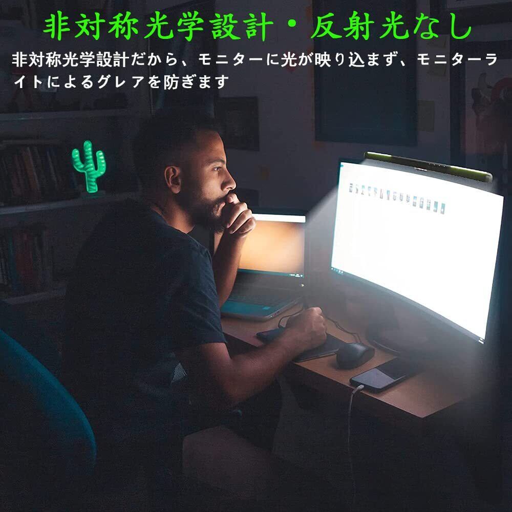 【非対称配光設計】モニターライトは非対称光学設計を採用して、スクリーンからの反射による反射光がゼロになって、見えづらくなりません。照明の角度が調整でき、光が目に入らないような設計になっています。