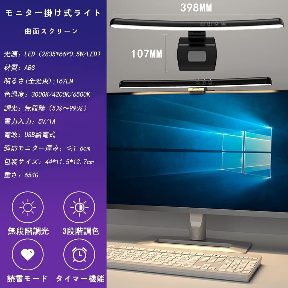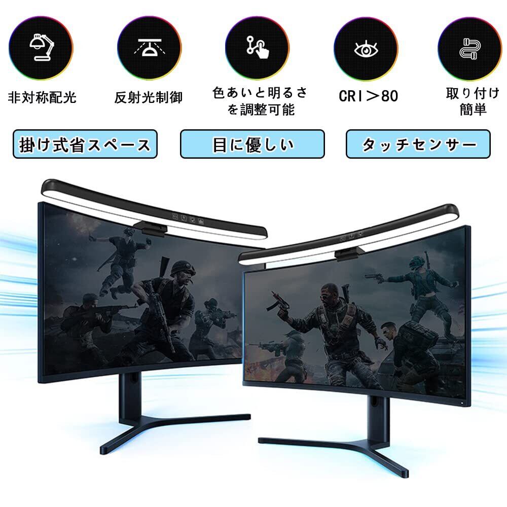 Makilight モニターライト 曲面スクリーンバー LEDデスクライト USBライト 40cm 非対称配光 モニター掛け式ライト タッチセンサー調色調光 スクリーンライト PC作業 読書 仕事 寝室 卓上に対応 USB給電