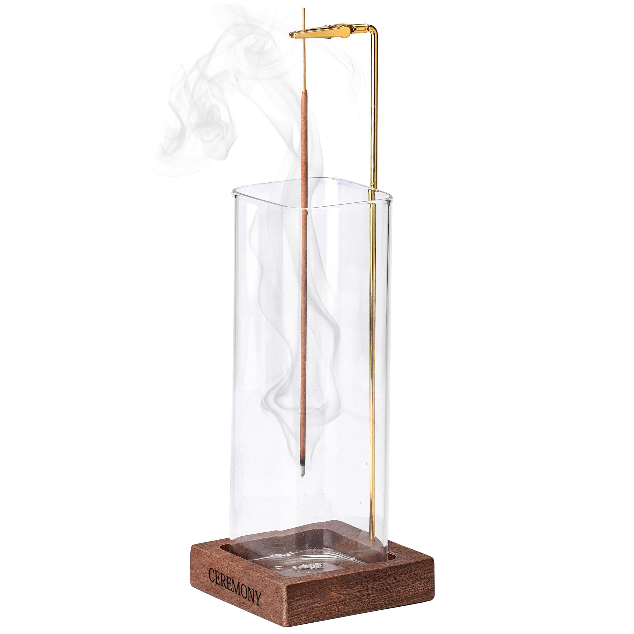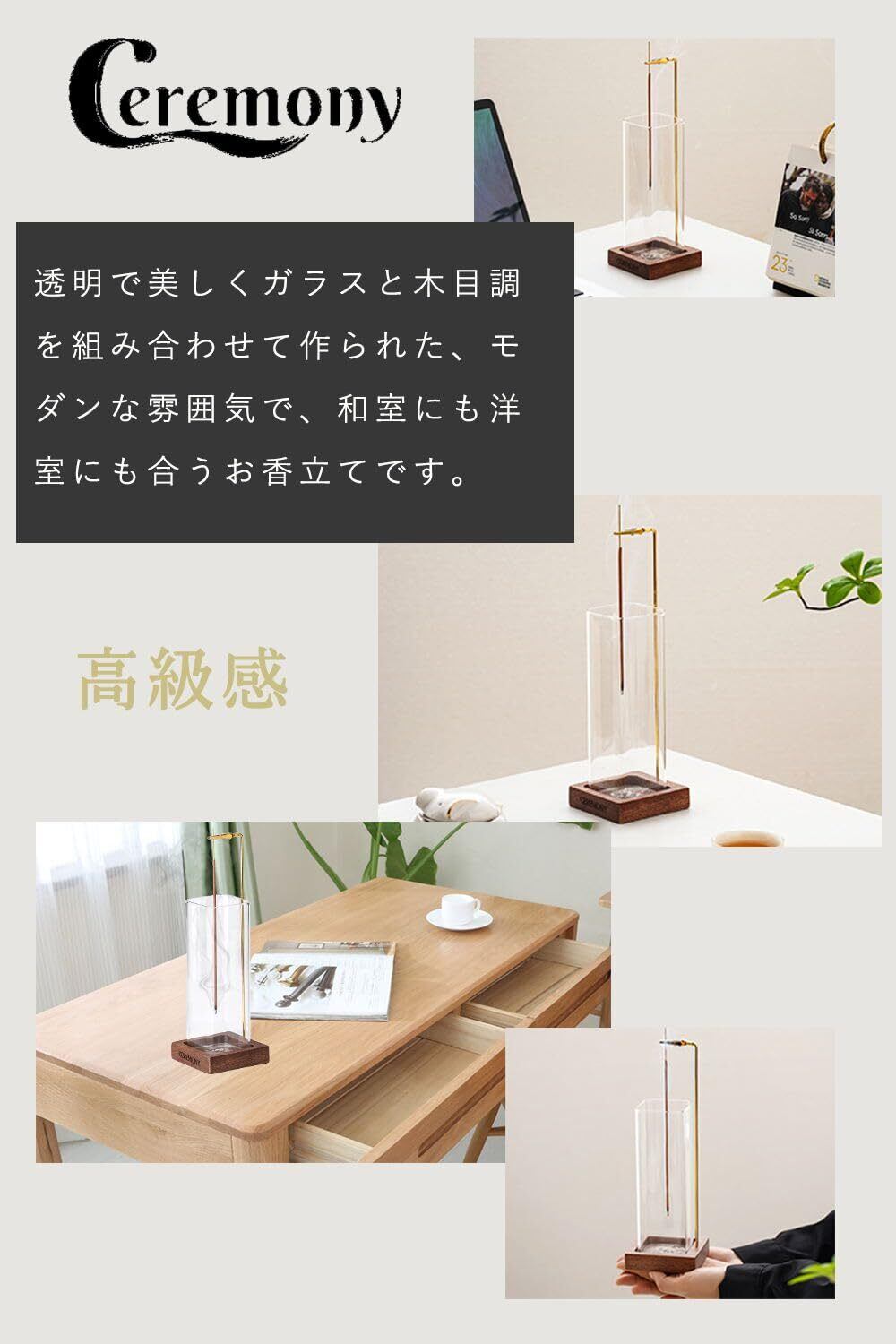 CEREMONY お香立て 灰がこぼれない 御洒落 ガラス高さUP 長香にも対応 香炉 線香立て 仏壇 書斎 瞑想 玄関先(お香は付いていません)