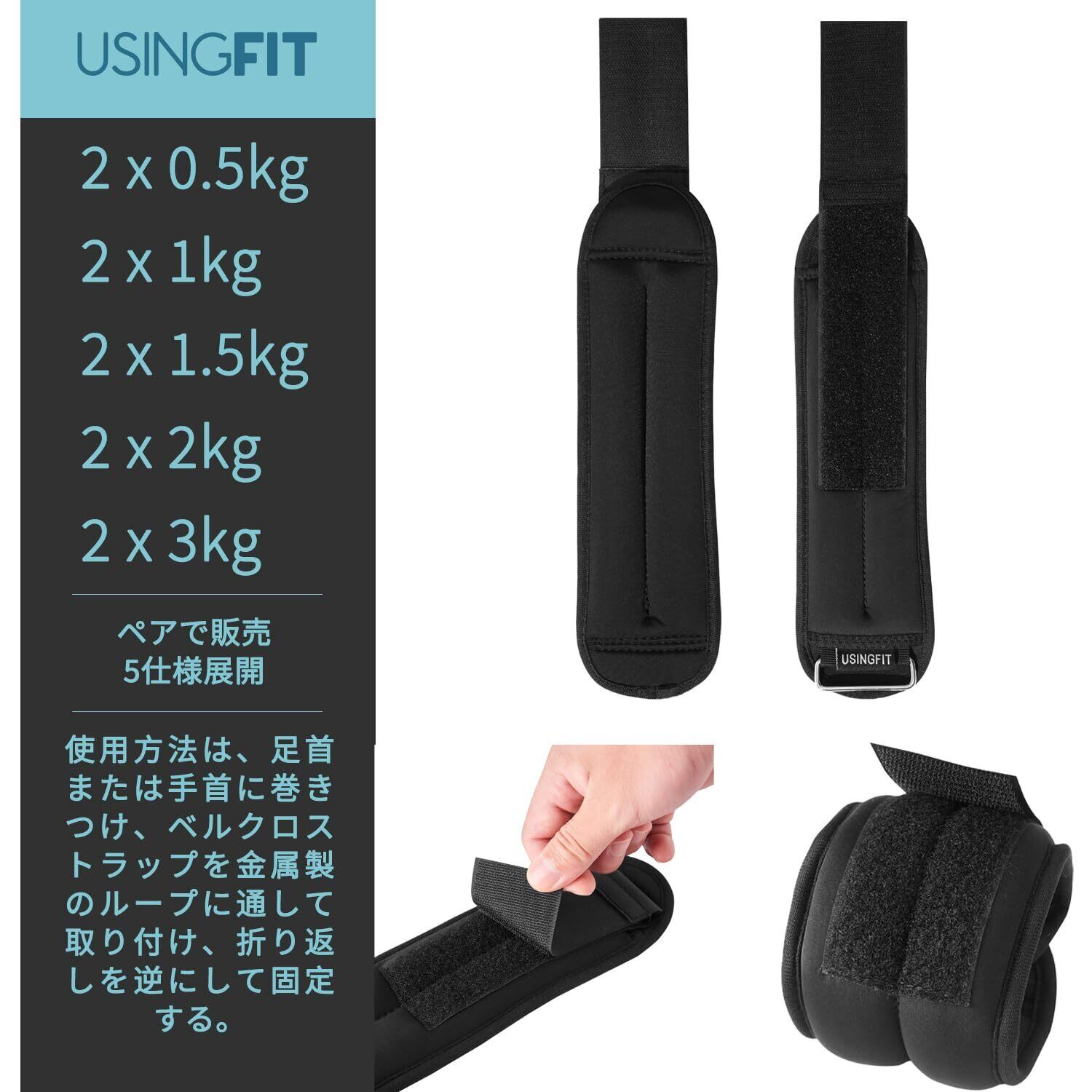 USINGFIT アンクルウェイト 足首 手首 重り おもり 筋トレ ウェイト リスト 2 * 0.5Kg / 2 * 1Kg / 2 * 1.5Kg / 2 * 2Kg 2個 四仕様 砂袋 トレーニング リストウエイト パワーリスト アンクル 男性 女性 子供 ハンドウエイト パワーアンクル (2 * 0.5kg)