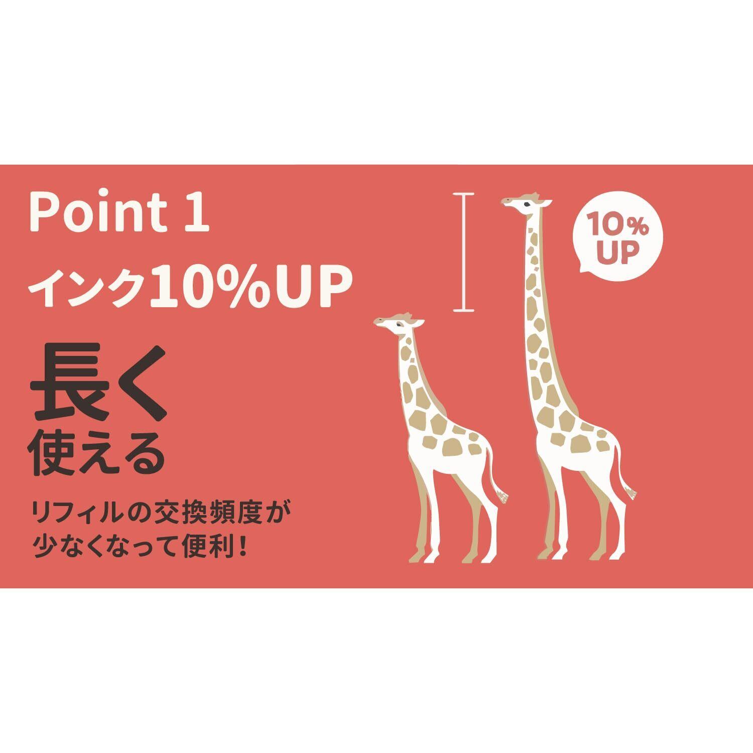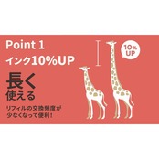 従来リフィルと比較しインク量を10%増量しており、1本のリフィルをより長くお使いいただけます。