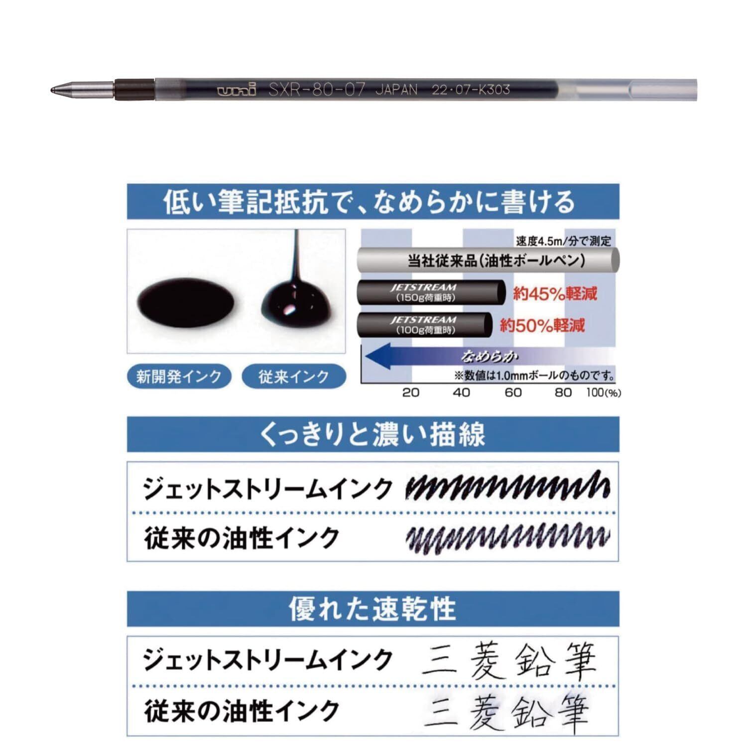 国内で2006年に発売し、低粘度油性インクの先駆けとして、速乾性に優れ、細字でもなめらかな書き心地と濃くはっきりと書けるインクが好評です。