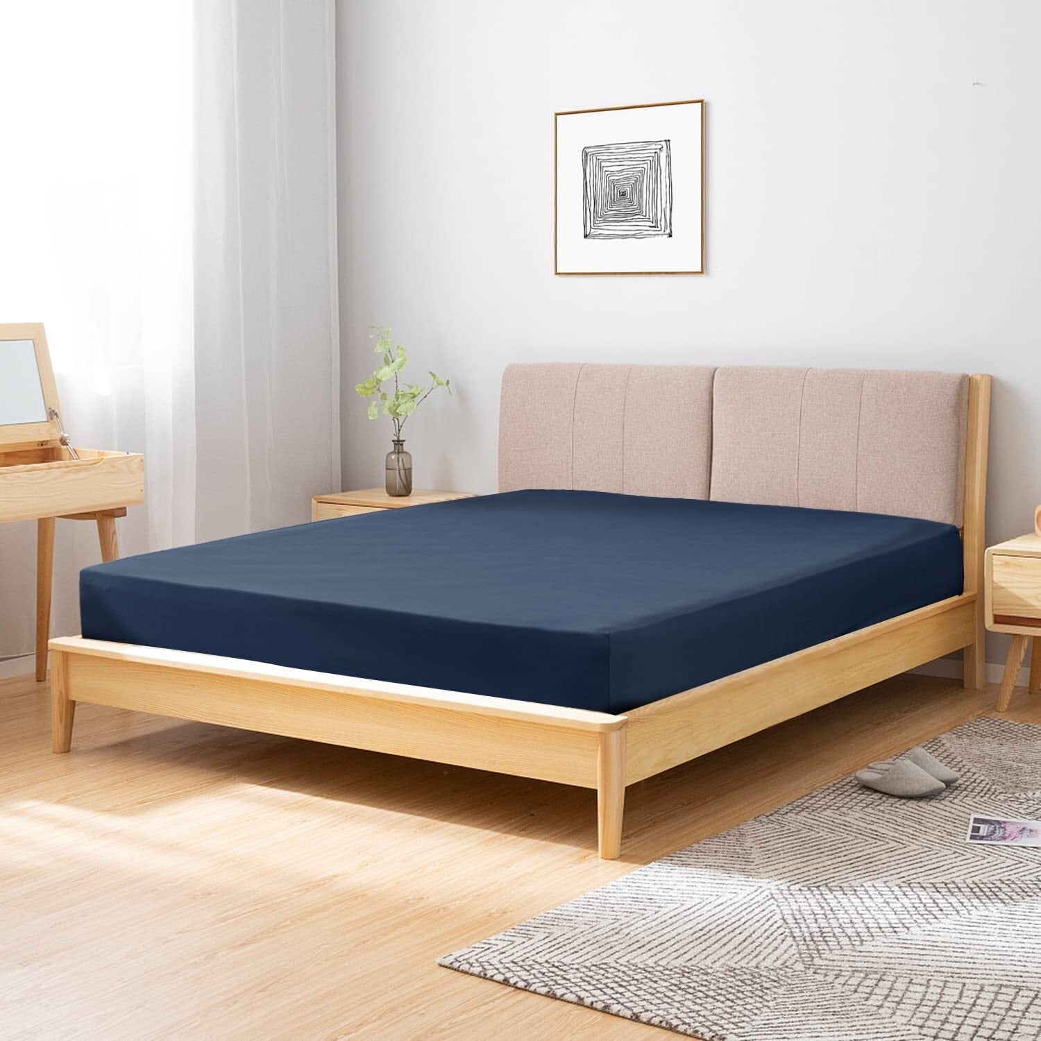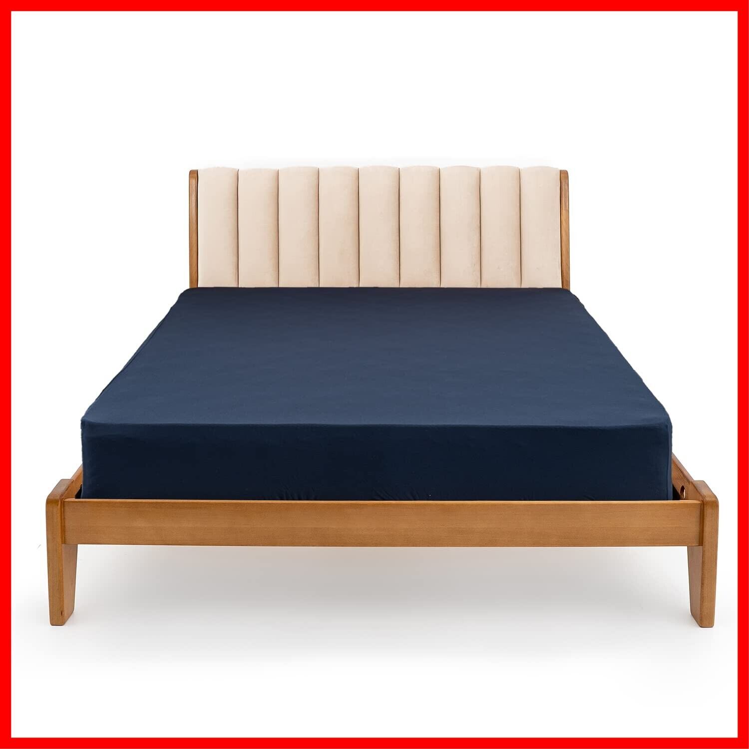 RECYCO ボックスシーツ 吸湿性&通気性 シワなし 天然レーヨン 柔らかでストレッチ性 厚さ38cmまで対応 耐久性 マットレスカバー ベッドシーツ 着脱簡単 丸洗いOK ベージュ 大家族・ホテルにも最適 スモールシングル&シングル兼用 ネイビー