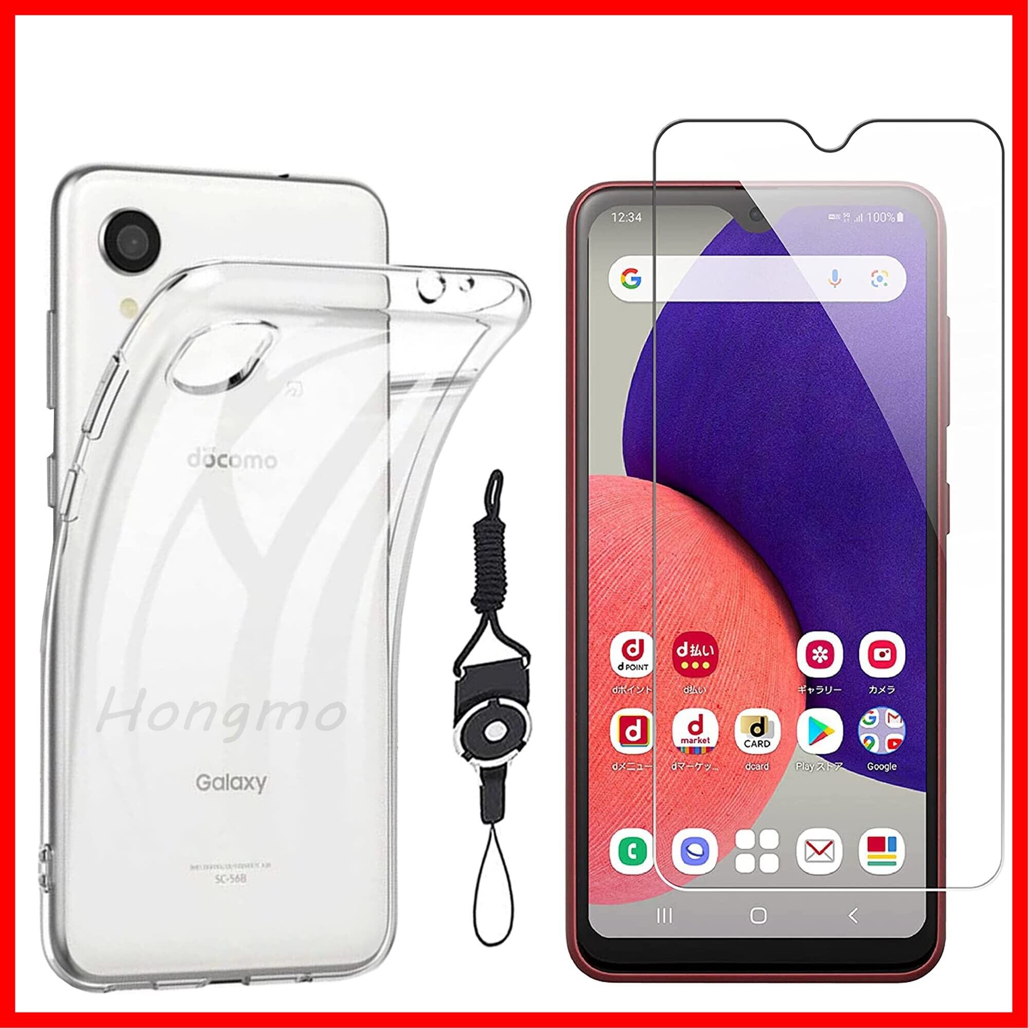 【1枚セットガラスフィルム+ケース TPU+携帯ストラップ 付属】For Galaxy A22 5G SC-56B 用の ガラスフィルム SC-56B 用の フィルム For Galaxy A22 5G 液晶保護フィルム 硬度9H 耐衝撃 防指紋+For Galaxy A22 5G SC-56B ケース TPU SC-56B 対応 透明保護ソフト シリコンケース 擦り傷防 薄型 軽量 専用ケース