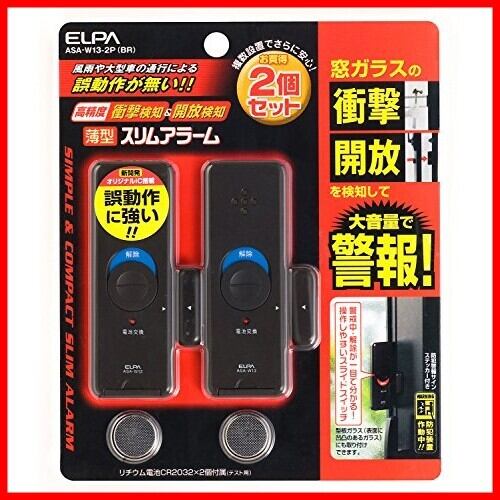 エルパ(ELPA) 薄型アラームダブル検知2P 防犯 衝撃+マグネット検知式 ASA-W13-2P(BR)