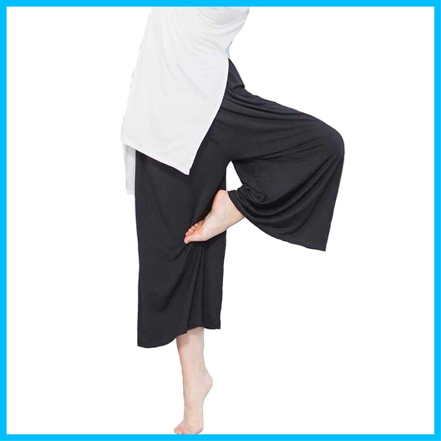[MIKA&MAYA] ワイドパンツ レディース ヨガ ガウチョ パンツ ベリーダンス ボトムス (ブラック, フリーサイズ)