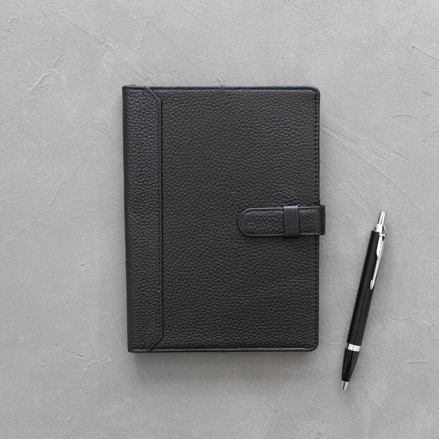 【 ノートだけじゃない!たくさん入る便利なポケット 】 ただノートを入れるだけのノートカバーでは物足りないあなたの為に、便利な機能を盛り込みました。 【多目的スペース】定規やポストイットなどノートと一緒に使用する小物を収納することができます。 【名刺、カード入れ】左右に4か所のカードポケットを設計しました。名刺やクレカなどを入れておくことで、もしもの時にもスマートに対応できます。また、カードポケットにはRFID防止機能も搭載しているので、安全面でも安心できます。 【ペンホルダー】ノートや手帳には必須のペン。フリクション3色ペンなどの太いペンでもしっかり収納することができます。