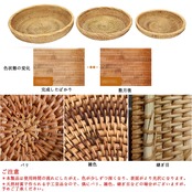 【規格】材質:天然籐製(塗料処理)、L:約25*5cm(直径*高さ)、M:約22.9*3.9cm(直径*高さ)、S:約19.3*3.4cm(直径*高さ)、型 :丸型 。ご注意:天然材質で作られる手工芸品なので、サイズ、色味など細かいところは一つ一つ微妙に異なる場合がございますが 、予めご了承ください。