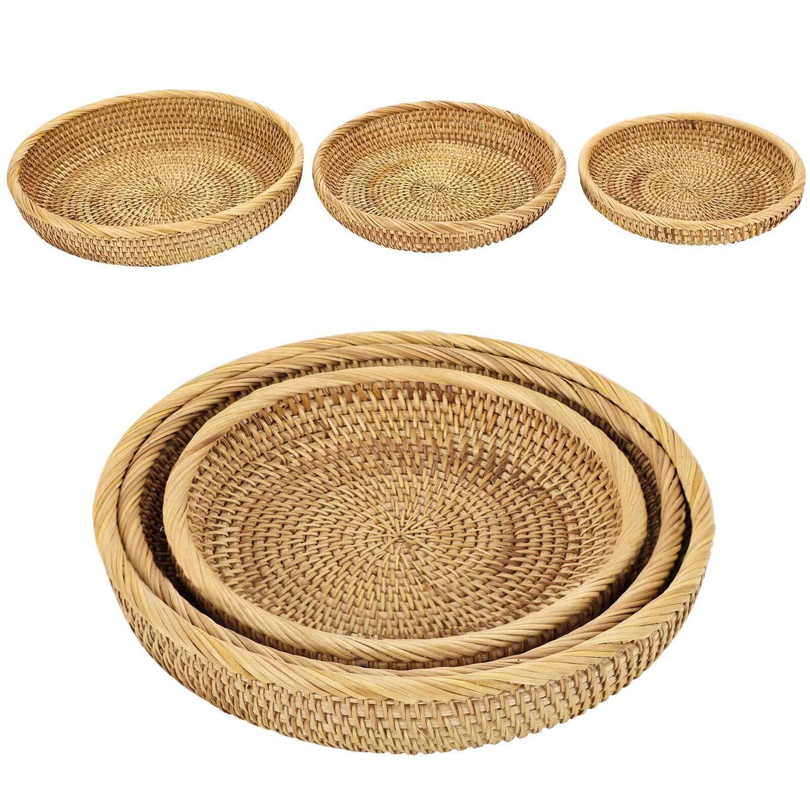 Sumnacon 藤編みトレー かご バスケット 小物入れ 天然籐 ハンドメイド ナチュラル おしゃれ 藤トレー お盆 アクセサリートレイ 手 工芸品 家庭用 ホテル用 小物整理 小物収納 雑貨収納 3個セット