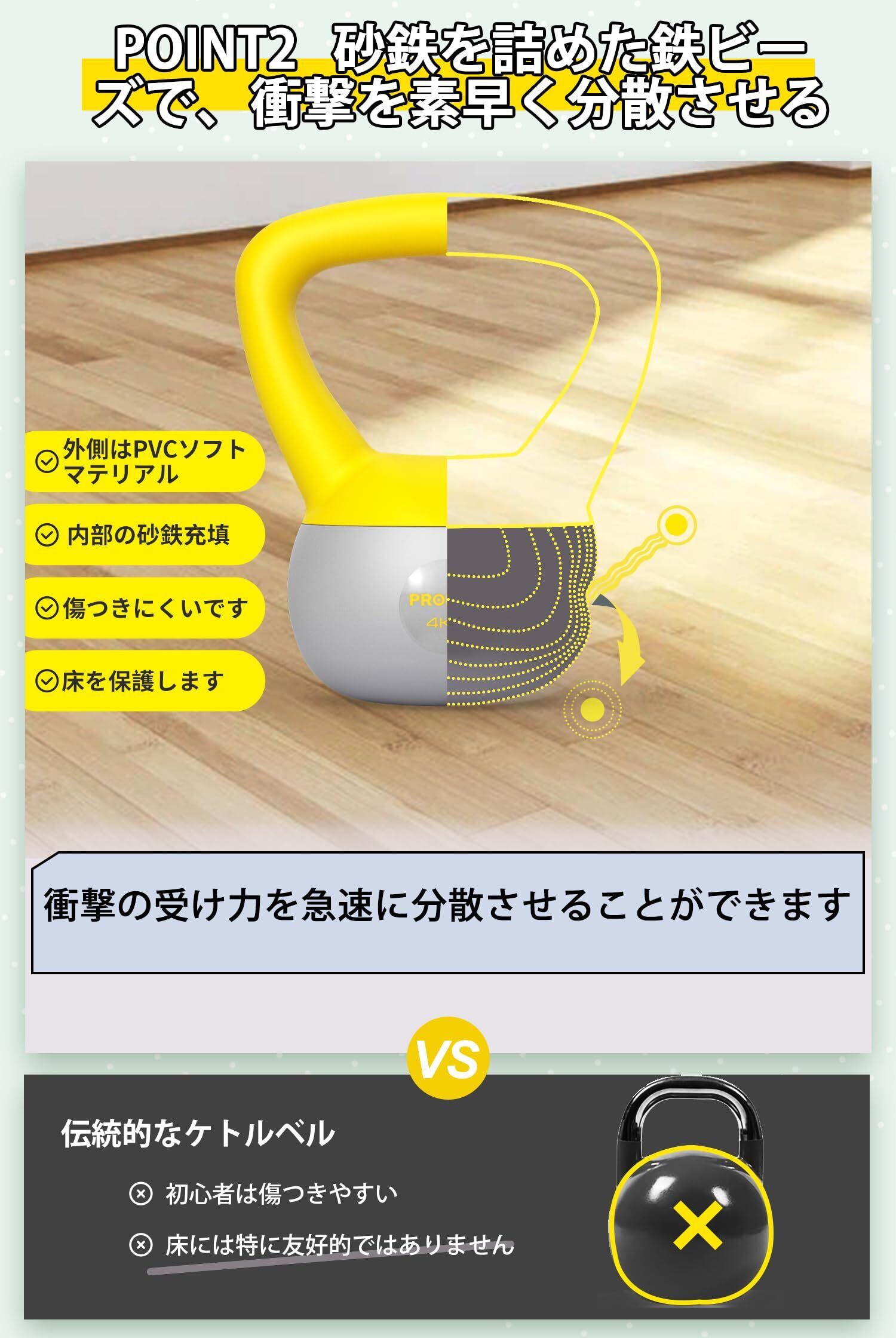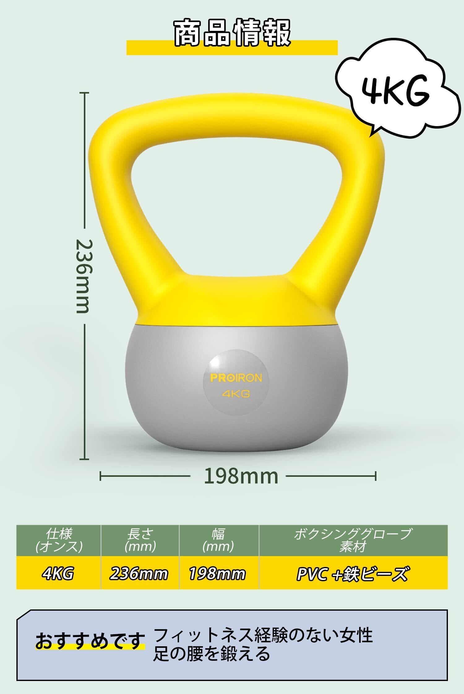 PROIRON ケトルベル ソフト 4kg kettlebell 鉄ビーズ砂鉄 充填