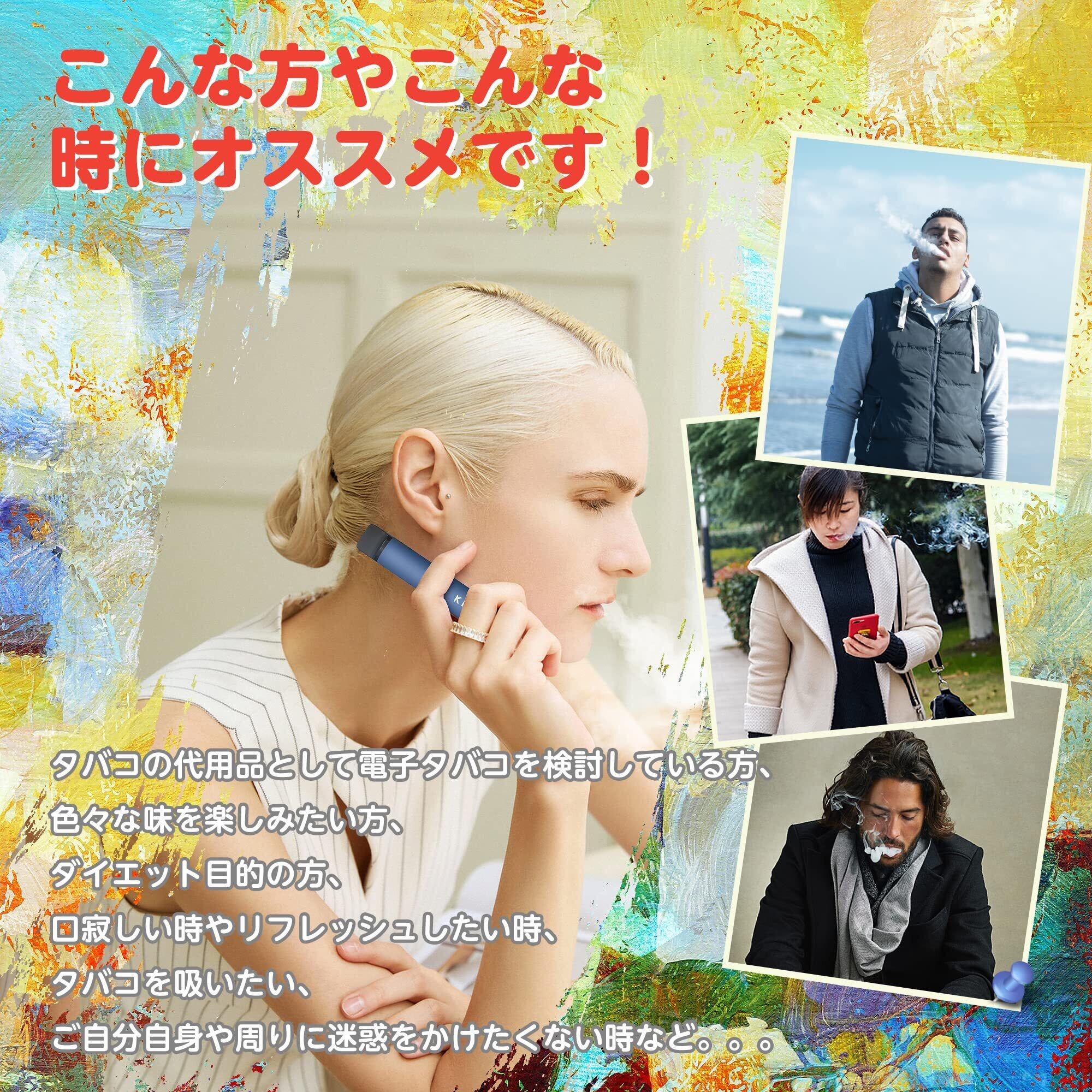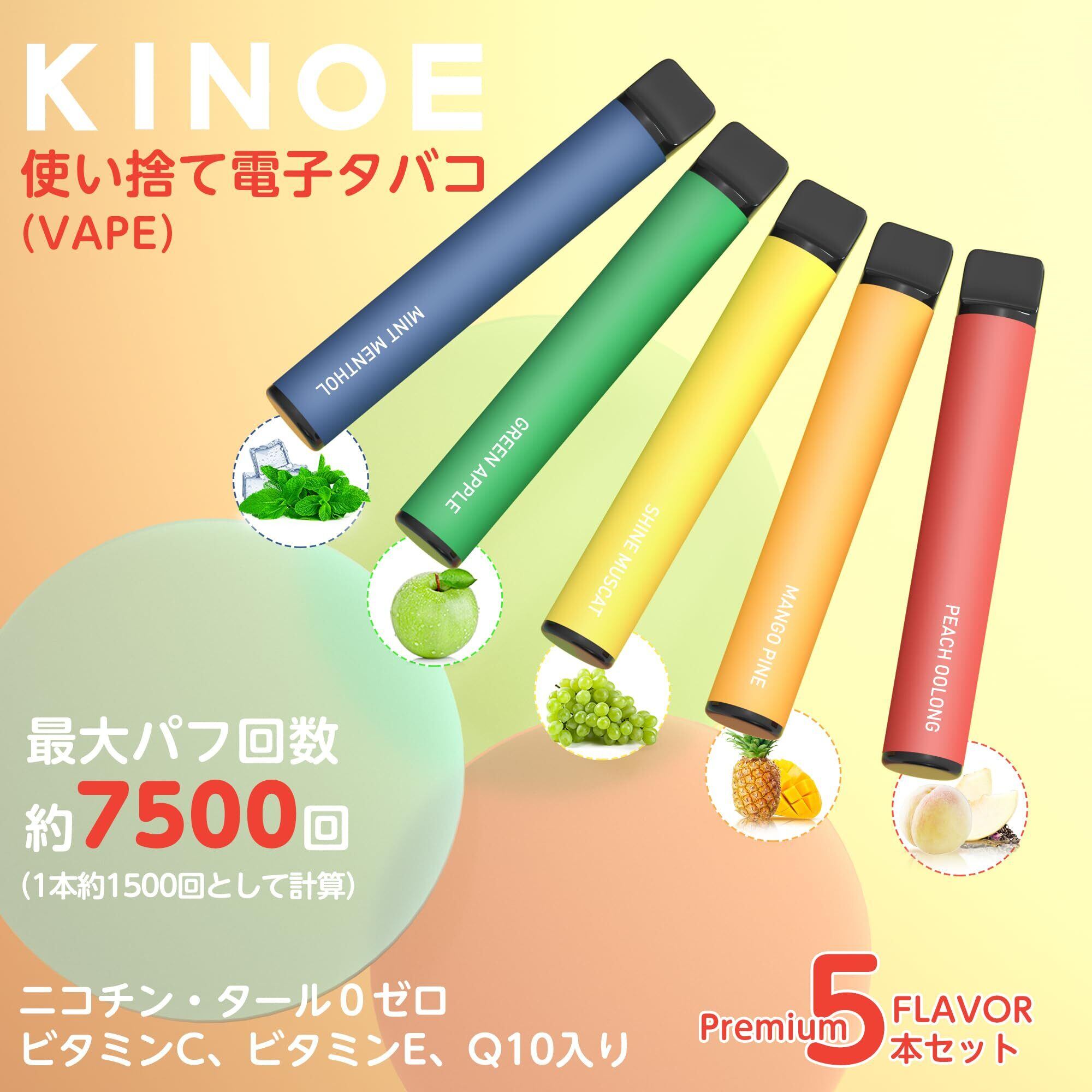 KINOE 電子タバコ 使い捨て VAPE 5本セット プレミアムフレーバー 7500回吸引可能 爆煙 大容量 水蒸気タバコ 禁煙 ニコチンゼロ ビタミン入り リキッド メンテナンス不要 オートスイッチ ベイプ