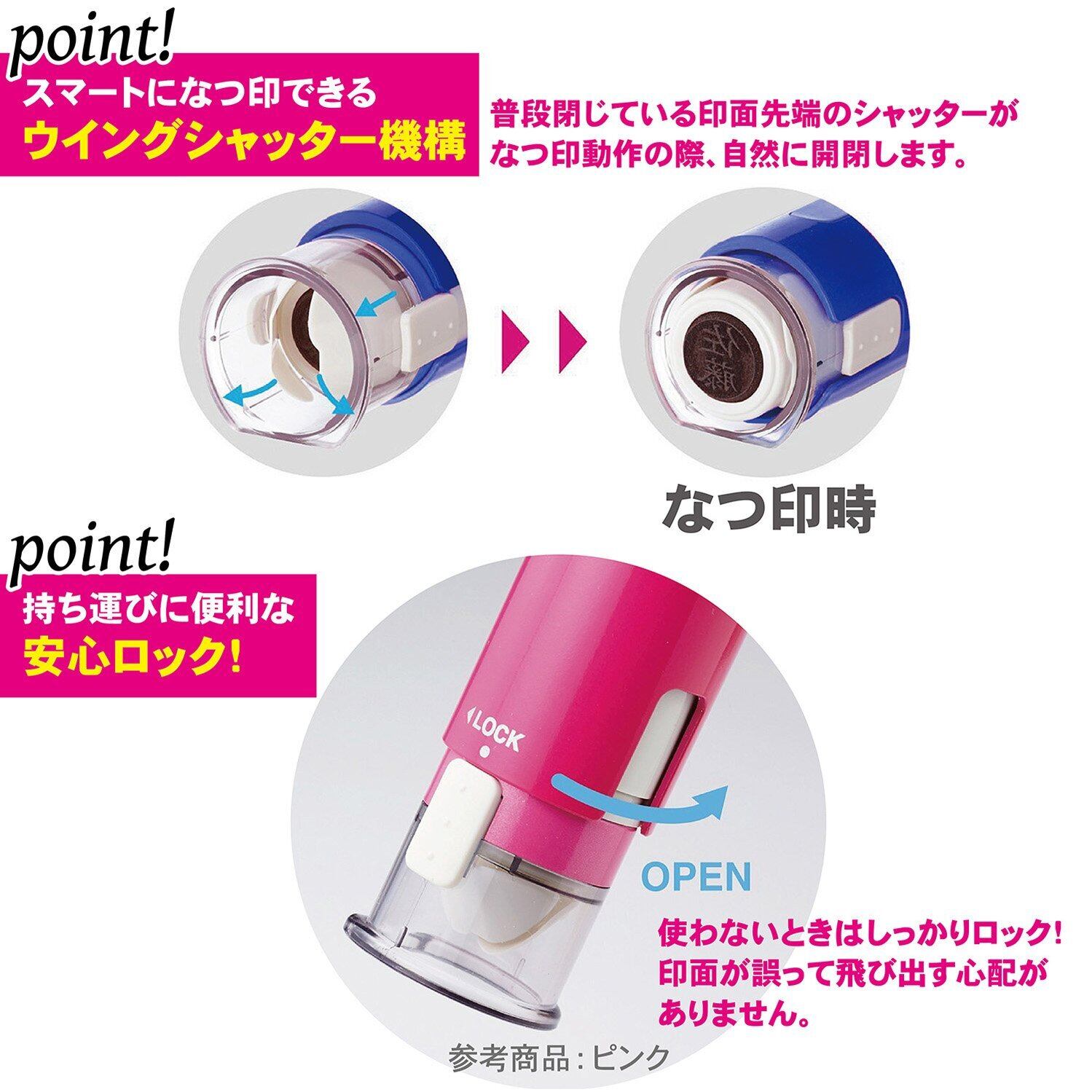 スマートになつ印できるウイングシャッター機構。普段閉じている印面先端のシャッターが捺印の際、自然に開閉します。