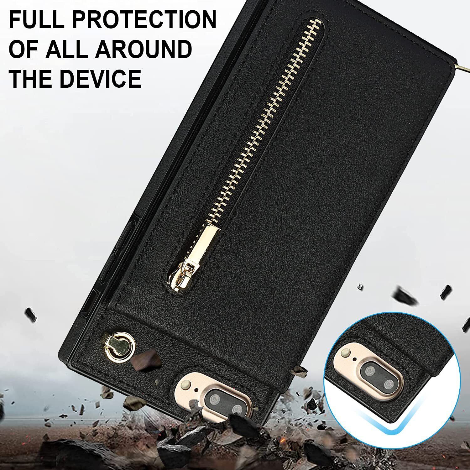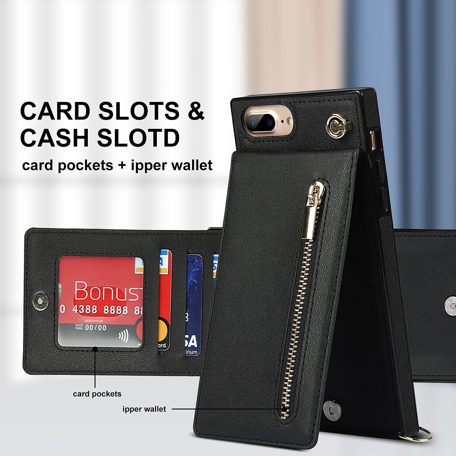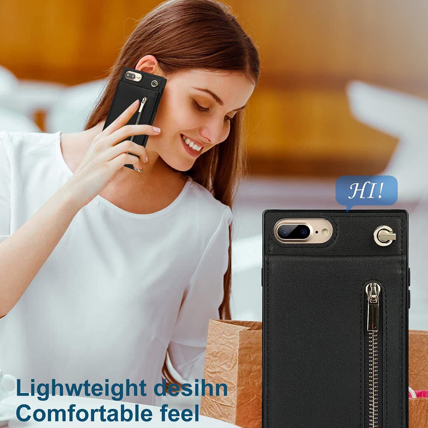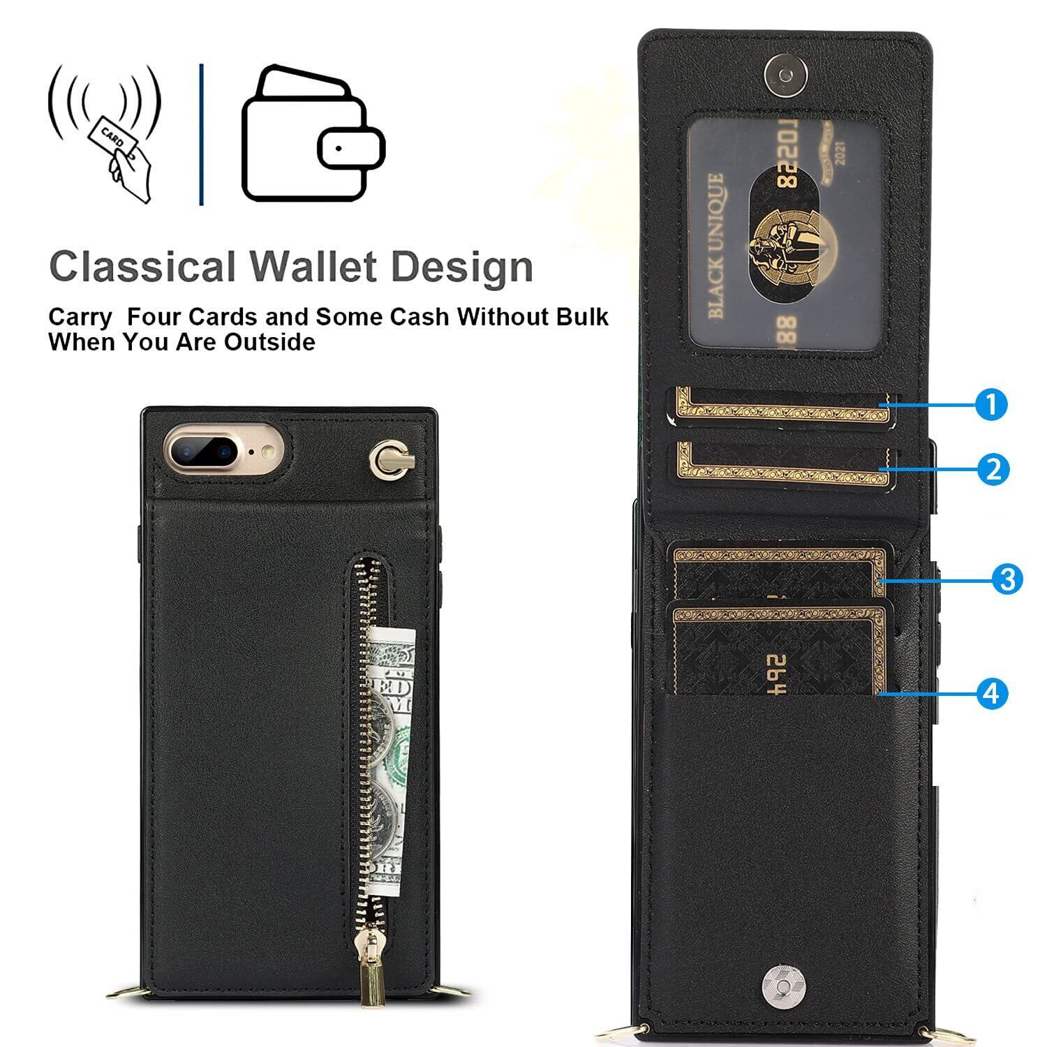 Cavor iPhone7 iPhone8手帳ケース iPhoneSE 第2/3世代 iPhoneSE2 SE3 SE 2022 ケース手帳型ショルダー クロスボディ手帳 iPhoneSE2スマホ 携帯用 ケースiPhoneSE3スマホ 携帯用 肩がけ 首掛け 斜め掛けチェーン ファスナー型ストラップ付きショルダーケースiPhonese2 iphone SE3財布型 ケーススマホケース【ブラック】
