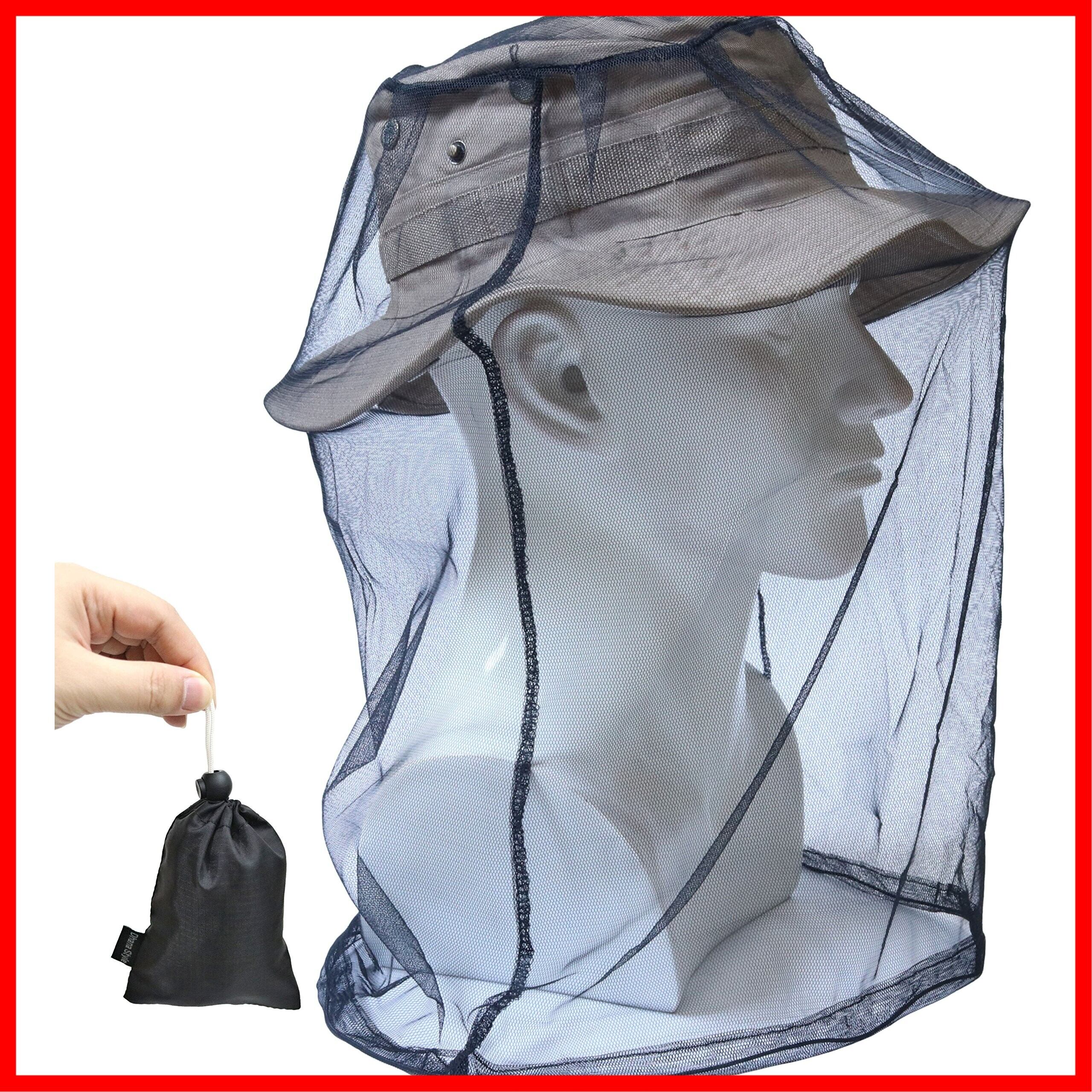 蚊よけ 虫よけ ヘッド ネット 防虫ネット メッシュ カバー モスキート ガード インセクト シールド 携帯 頭部 蚊帳 フェイスガード 収納ポーチ付き (BLACK)