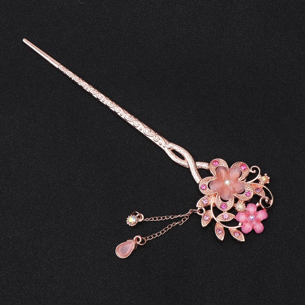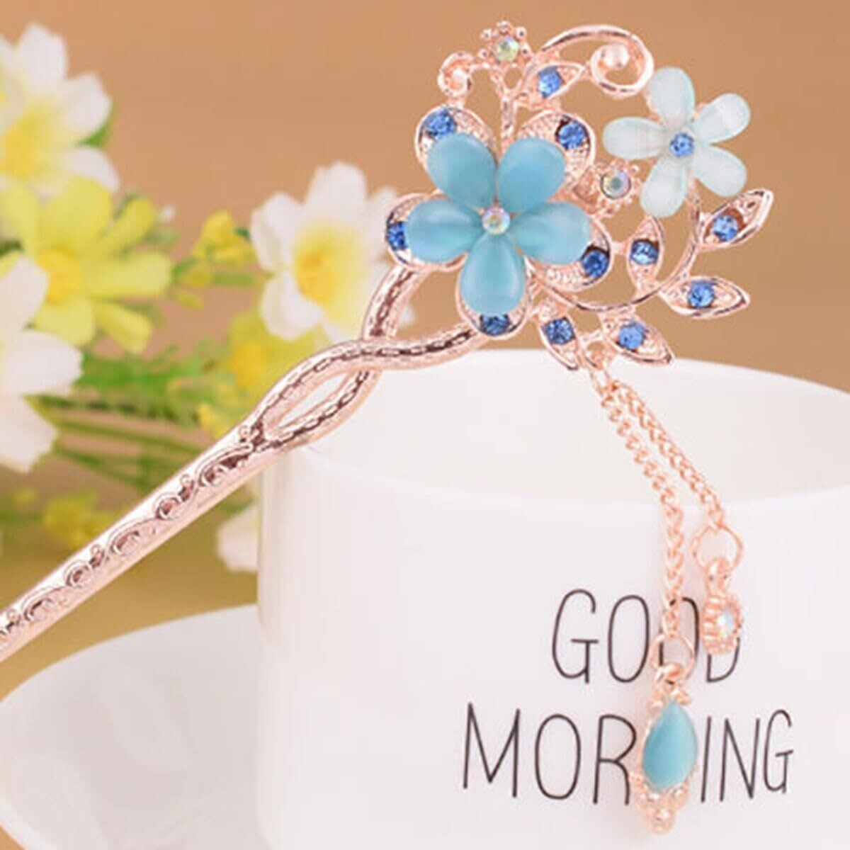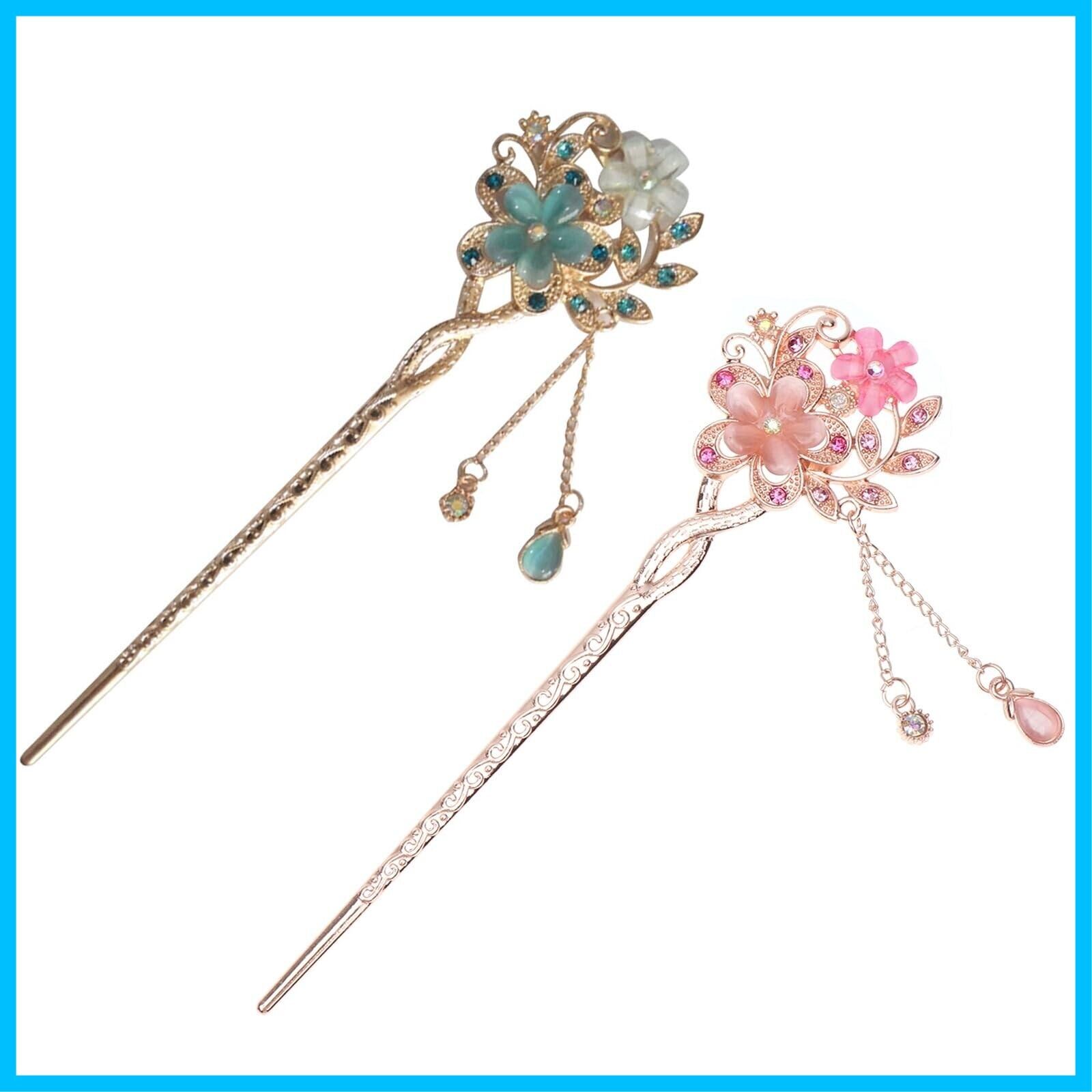 簪 中国風 一本挿し チャイナ服 かんざし 普段使い 金属 玉花 古風 髪飾り 玉 ヘアアクセサリー 和装 中華風 漢服 レディース 2本セット(青とピンク)