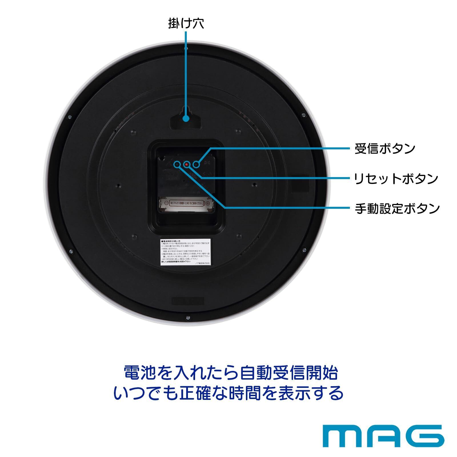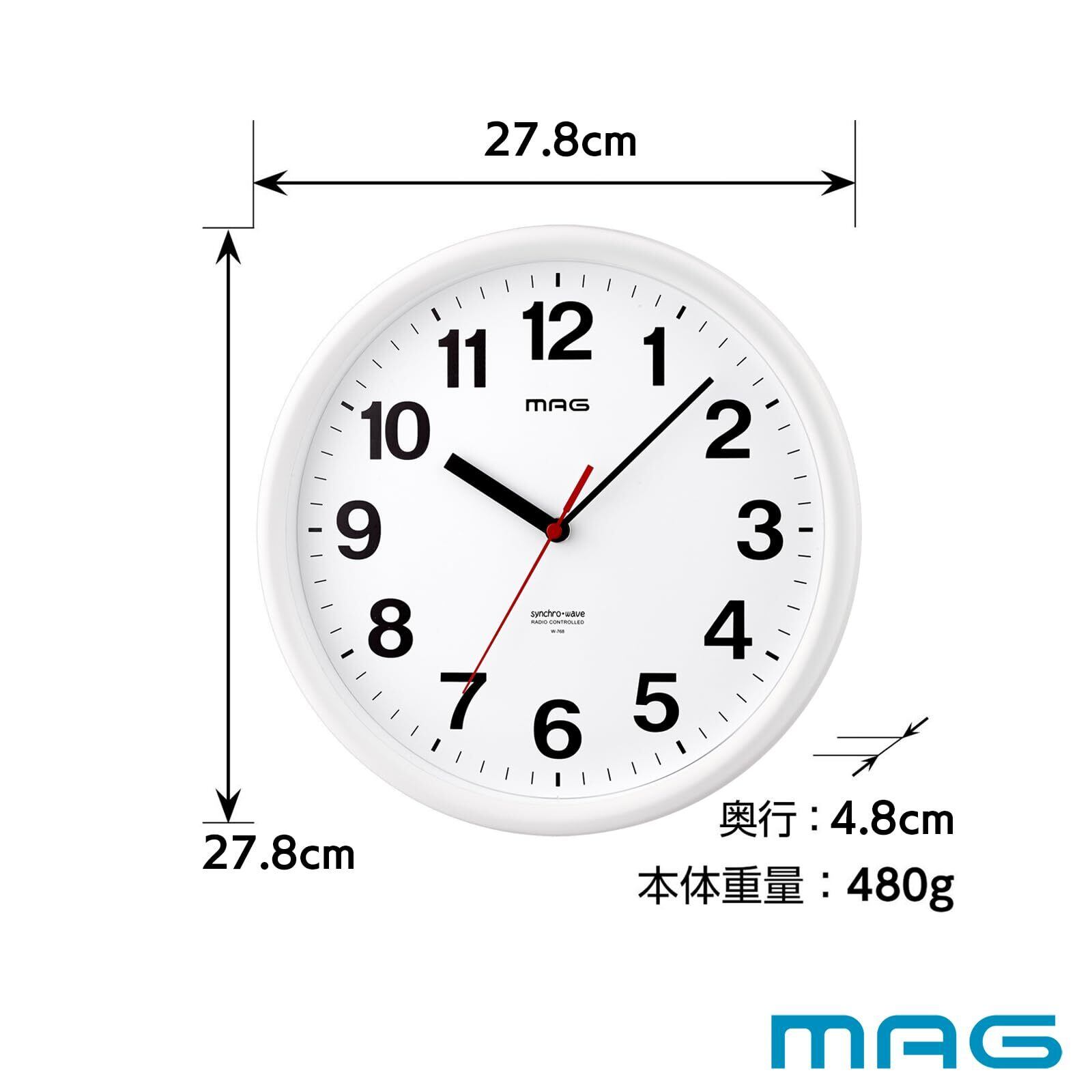 MAG(マグ) 掛け時計 壁掛け時計 電波時計 アナログ かわいい おしゃれ シンプル インテリア 北欧 直径27.8㎝ 夜間秒針停止 ホワイト パルク W-768 WH-Z ノア精密