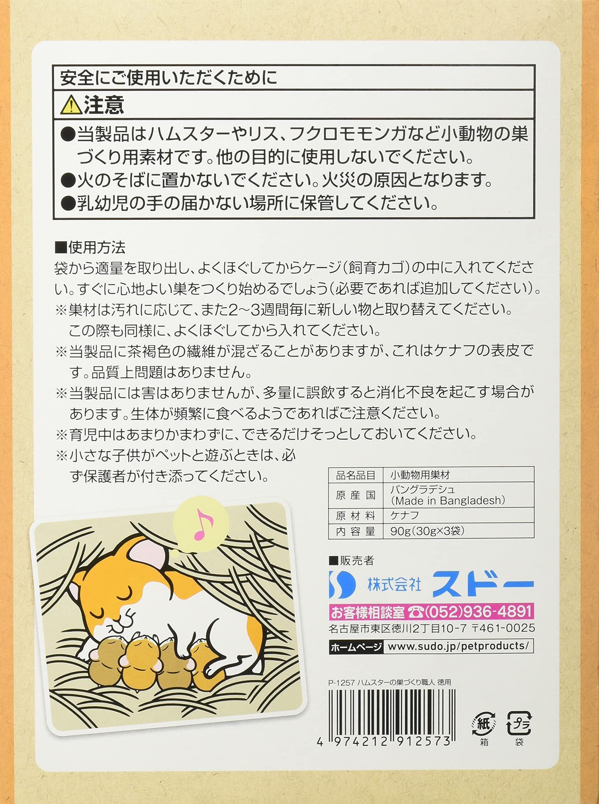 SUDO(スドー) ハムスターの巣づくり職人 徳用(30g×3袋入) 巣材 ケナフ 大容量 P-1257