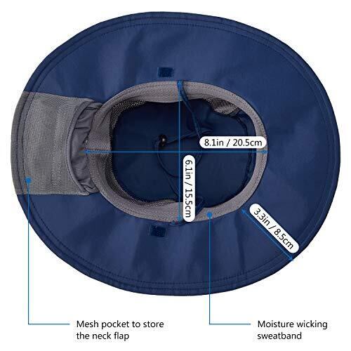 フックとループの取り外し可能なネックフラップと後ろの縁の下にある小さなメッシュポケットは日除け布を収納できます。