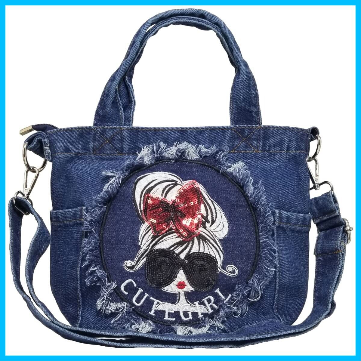 [DIVA Rose] ショルダーバッグ レディース ミニ 2way バッグ 小さめ 斜めがけ 軽い 軽量 ハンドバッグ トートバッグ デニム リボンガール (インディゴブルー)