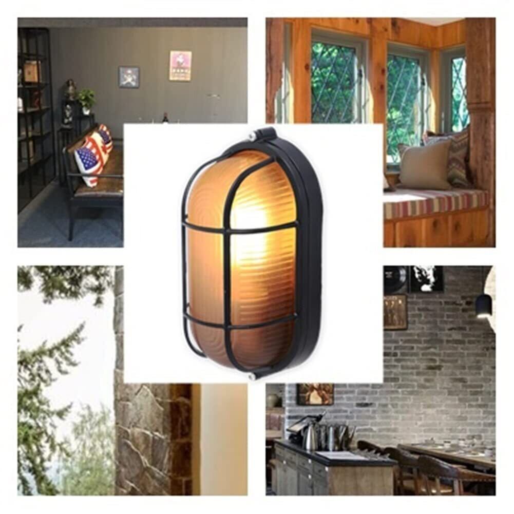 (アウプル) 壁掛け照明 マリンランプ レトロ インダストリアル デザイン ヴィンテージ アンティーク (黒 × 曇ガラス 2個セット)