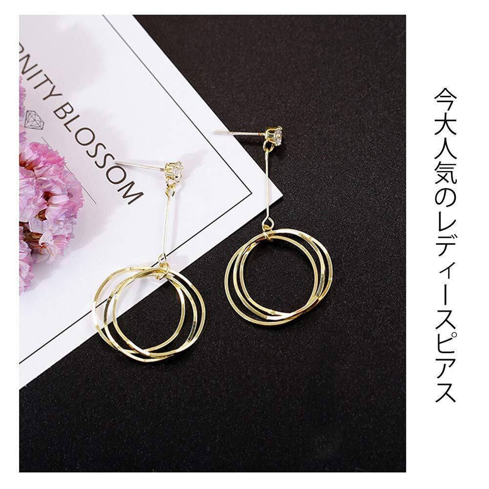 ロング ピアス レディース 14K 14金 スワロフスキージルコニア一粒 シンプル 三つの円 揺れる イヤリング シルバー925 スタッド 人気 安心の 金属アレルギー対応 ギフト包装