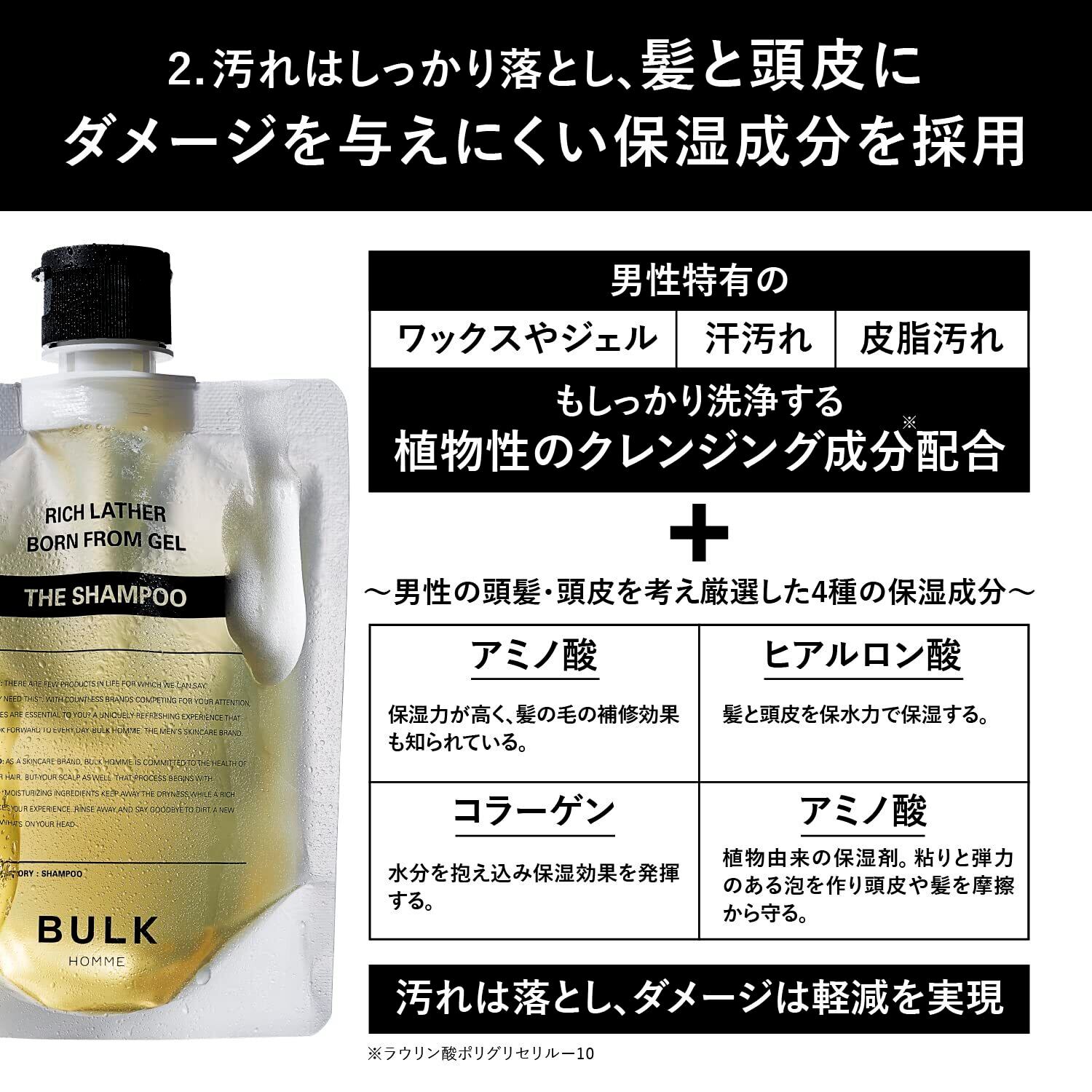 【男性に特化した開発】健康な髪を健やかに育む頭皮環境を作るためには、頭皮の汚れを落として清潔な環境に保ち、同時に潤いを維持させることが不可欠です。そのため、シャンプーには不要な皮脂や汚れしっかり洗浄し、髪に必要な成分や頭皮に必要な保護膜を保持する機能が必要だと考えます。