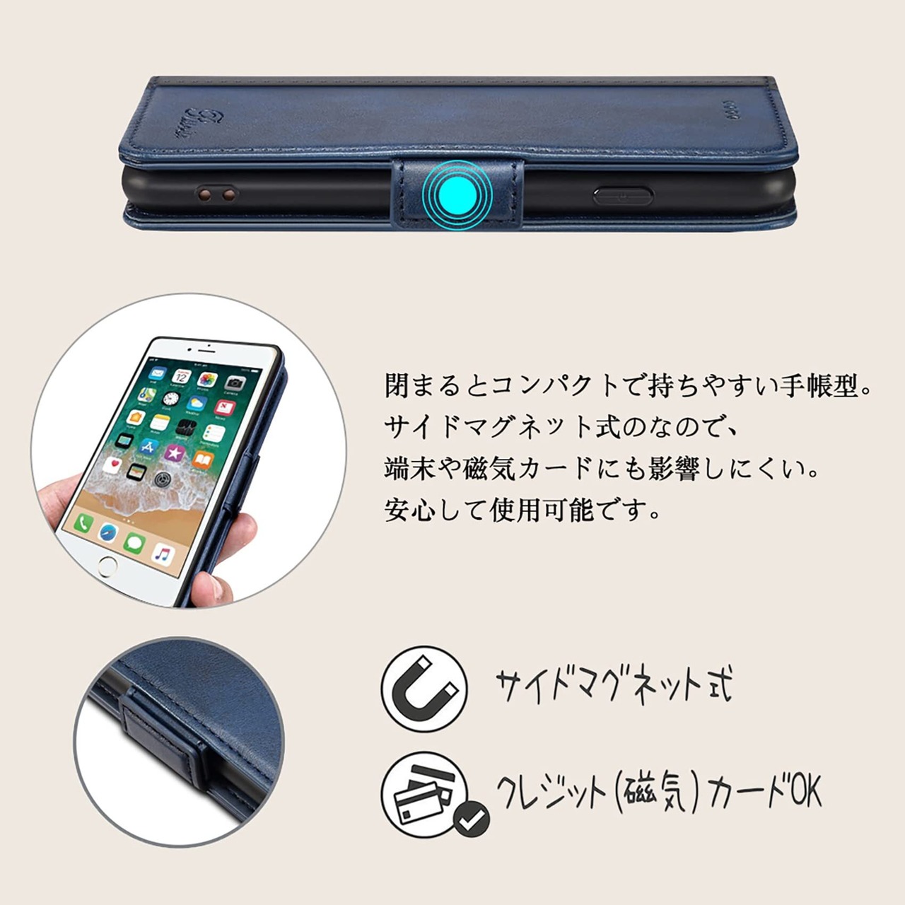 手帳型ケース 外部のカバーは合皮レザー素材を採用しており、放熱性や耐衝撃が良く、傷や埃を防ぐことができるiPhone7カバーです。インナーケースは弾力性のあるソフト素材を採用しており、角までしっかり保護できるiPhone8ケースです。