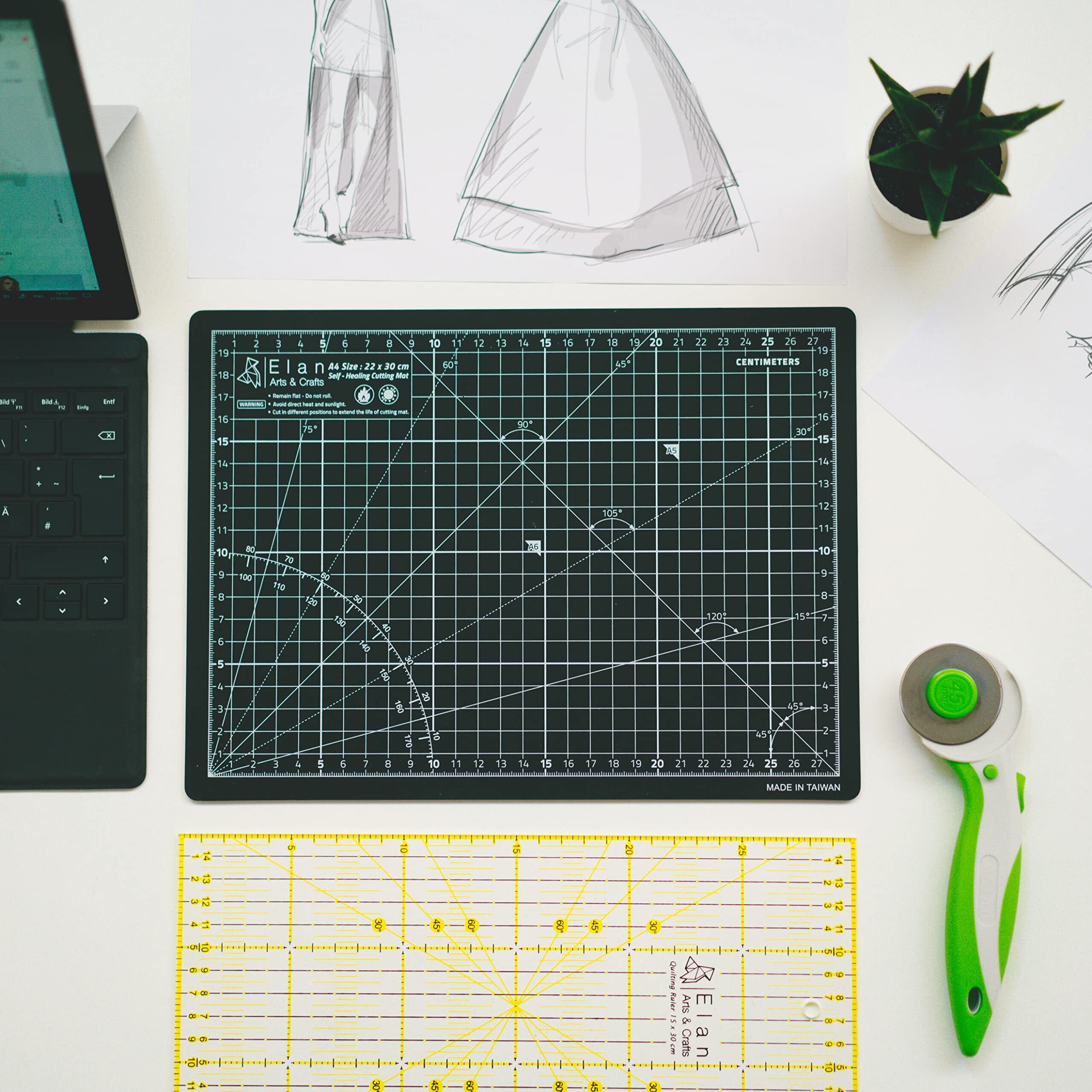 Elan カッターマット 手芸用品 両面仕様 A3 44 x 30cm ブラック&グレー カッティングマット 家庭用 業務用 カッティングマット